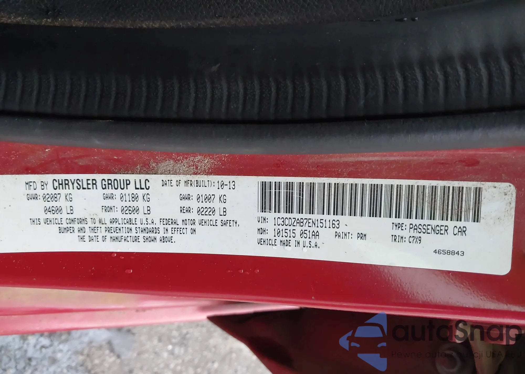• VIN 1C3CDZAB7EN151163