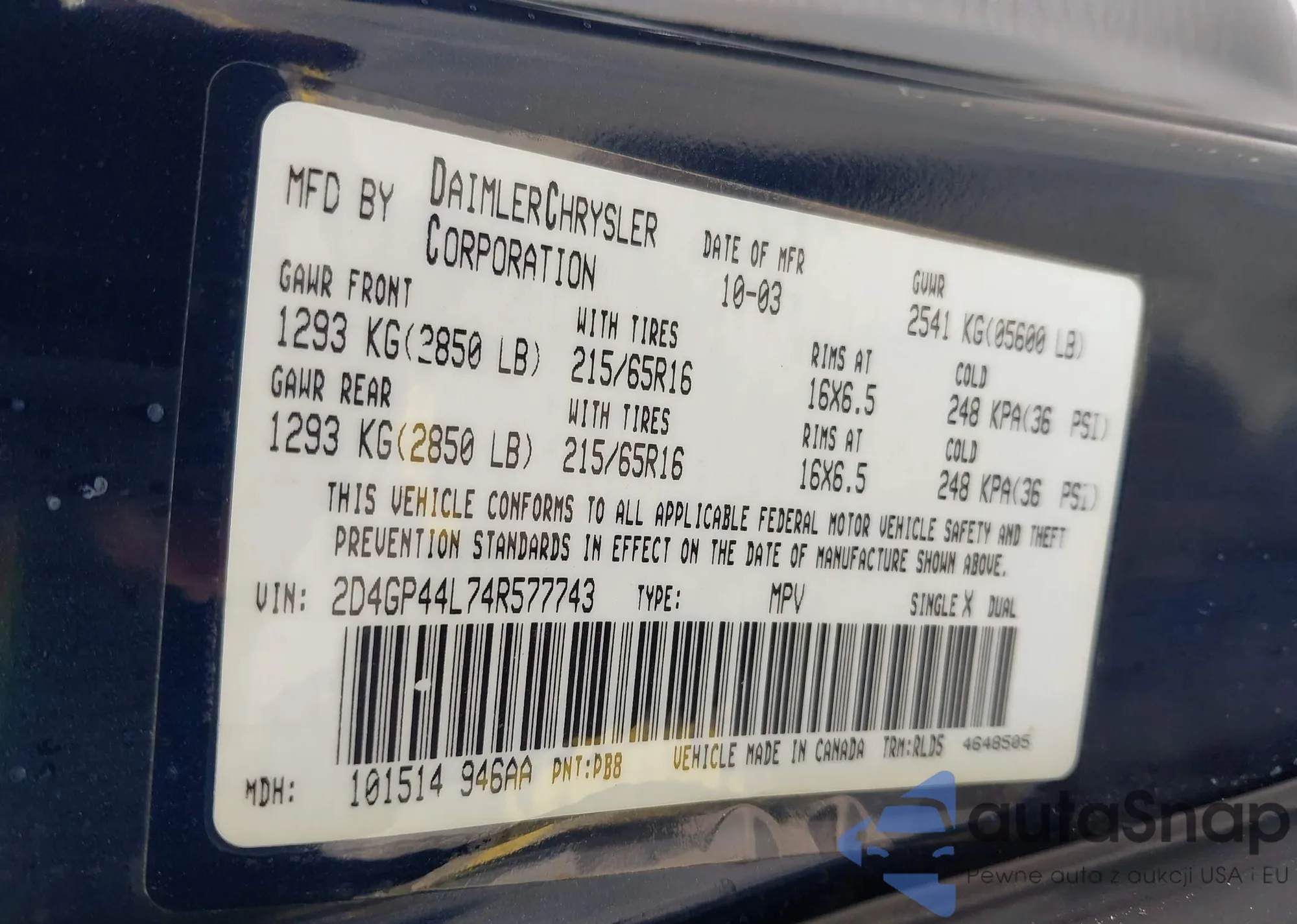 • VIN 2D4GP44L74R577743