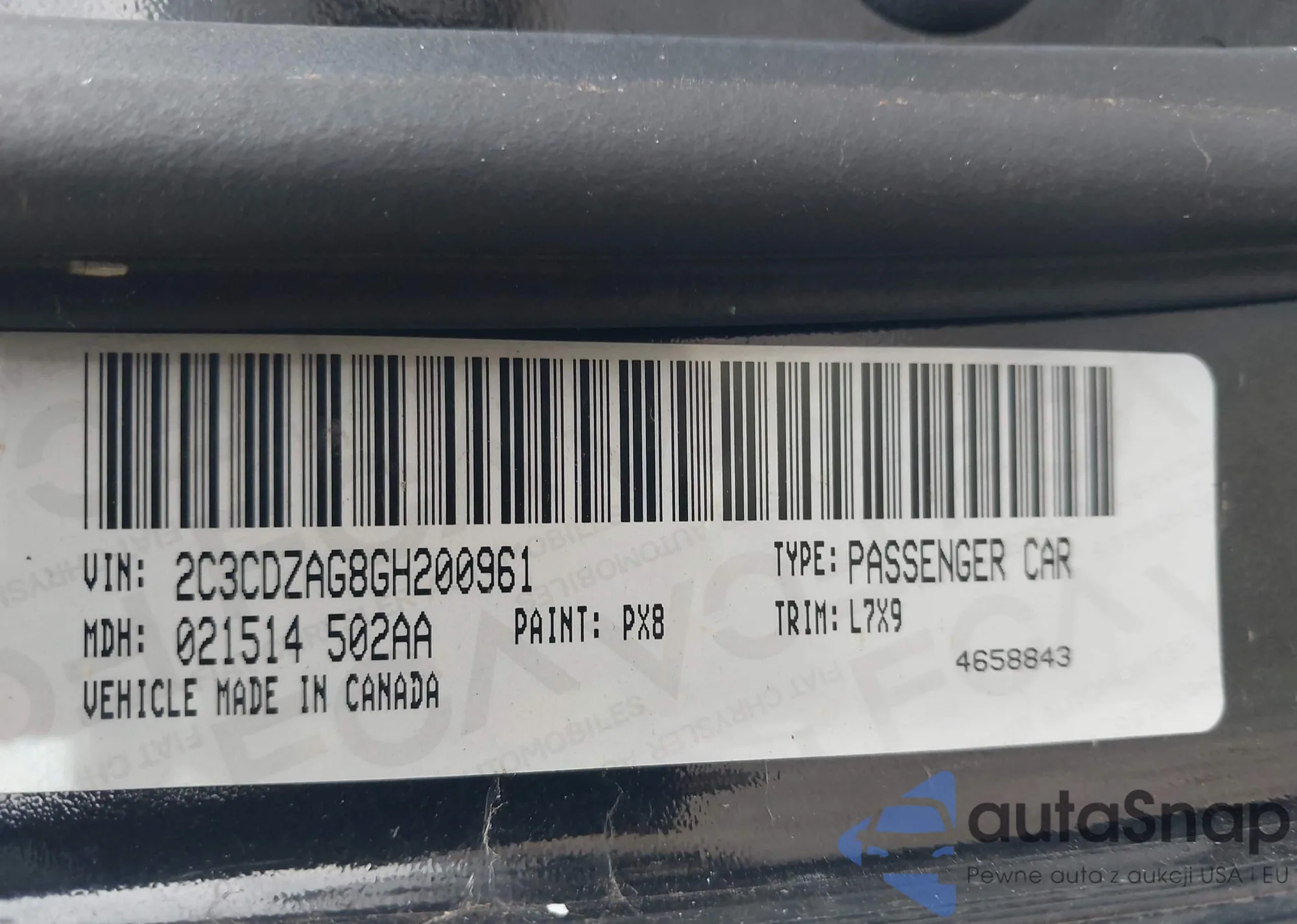 • VIN 2C3CDZAG8GH200961