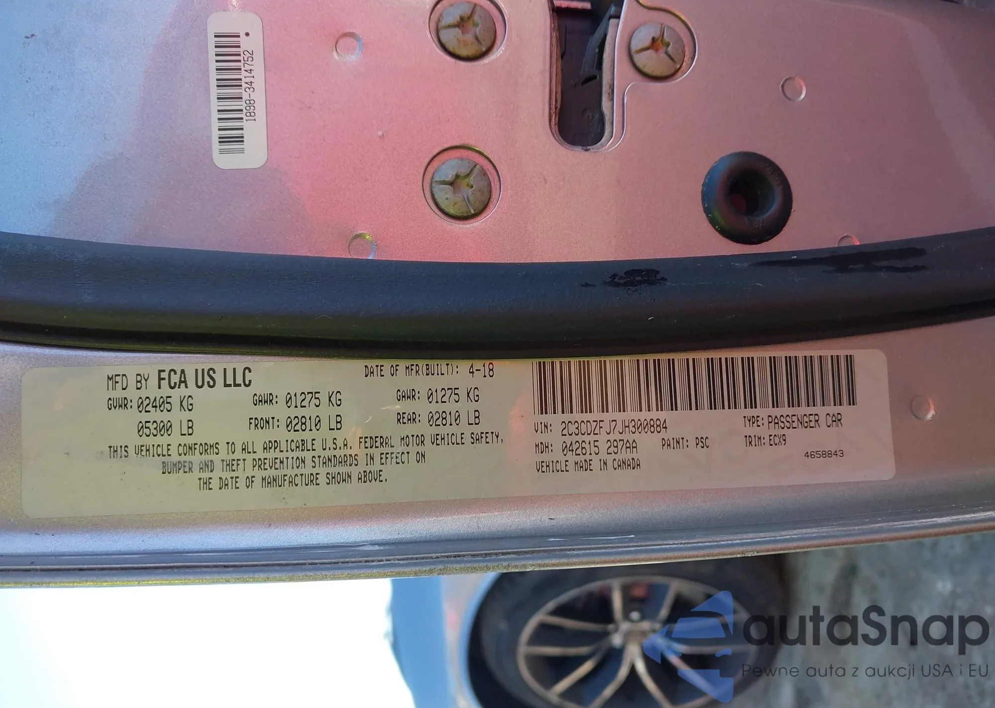 LOT: 43579592 VIN: 2C3CDZFJ7JH300884