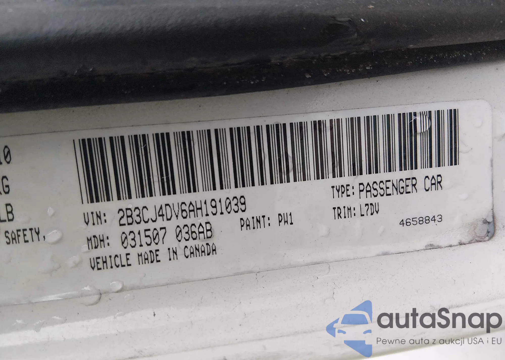 • VIN 2B3CJ4DV6AH191039