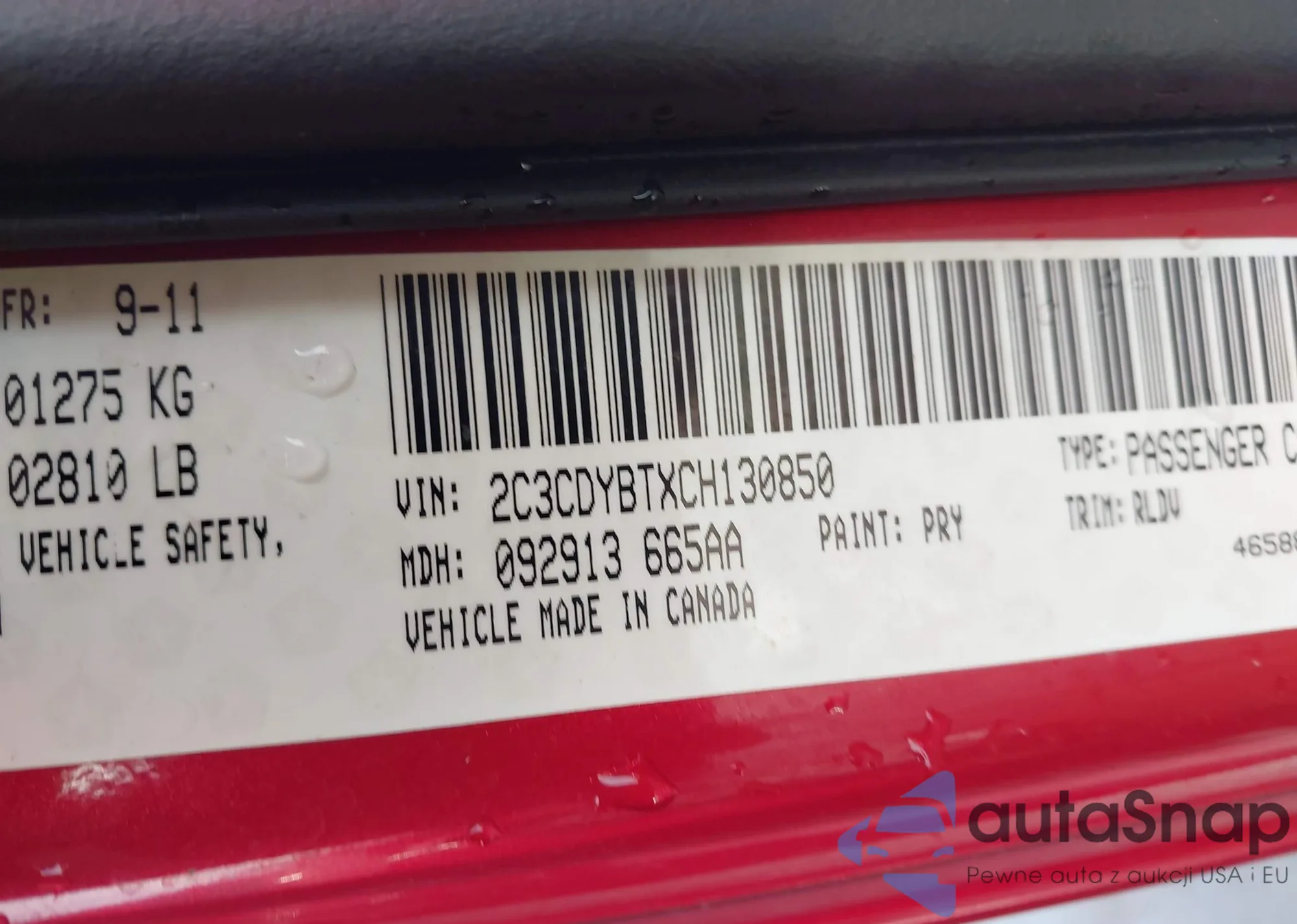 • VIN 2C3CDYBTXCH130850