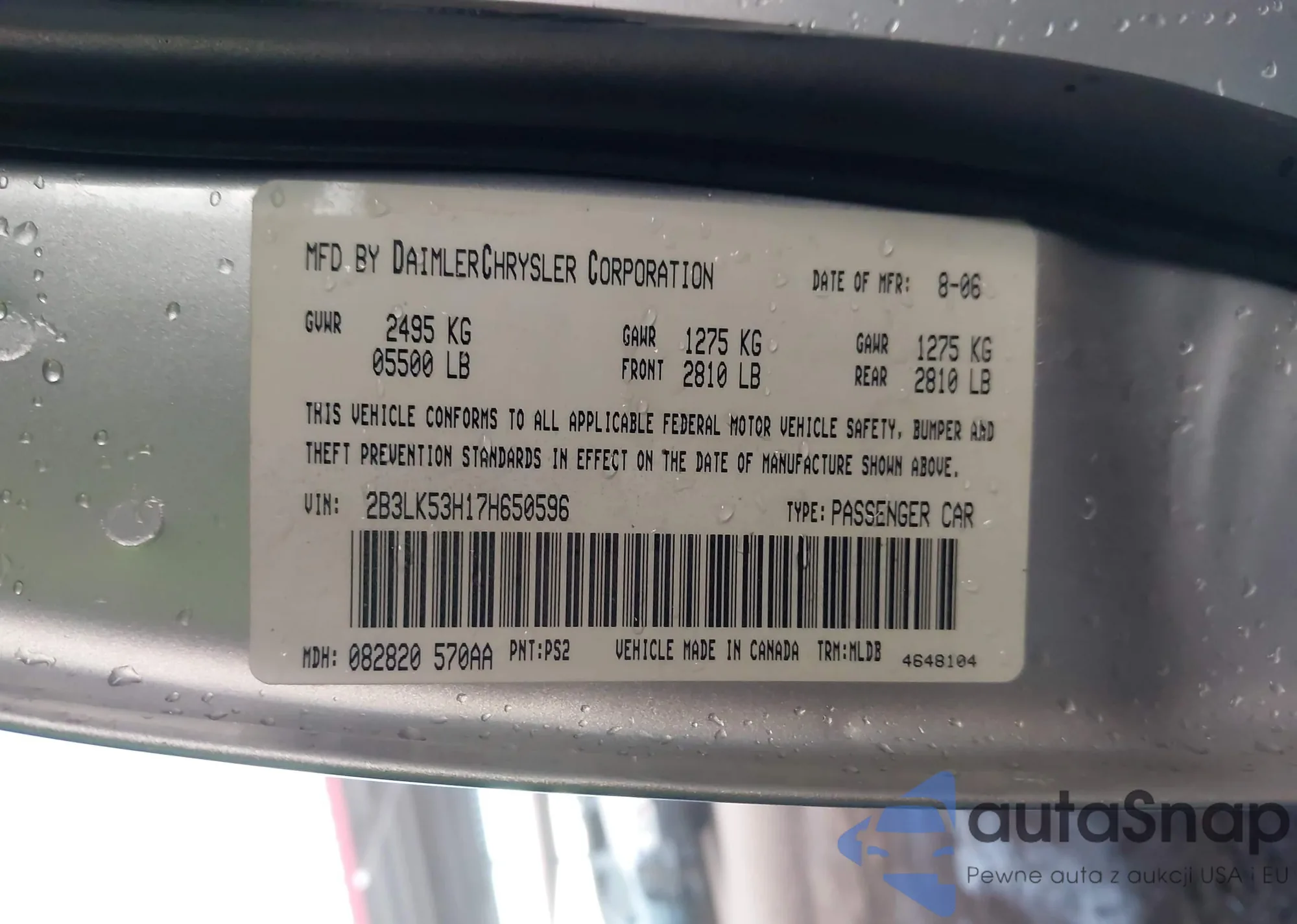 • VIN 2B3LK53H17H650596