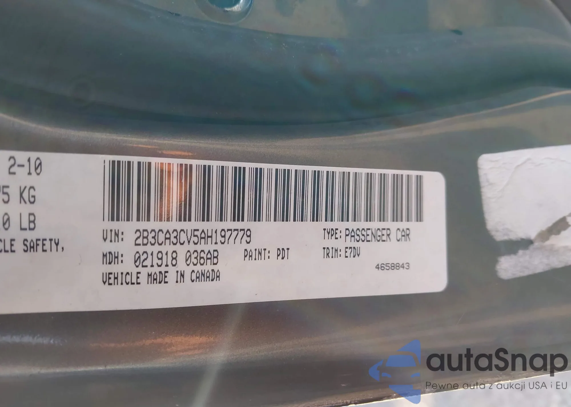 • VIN 2B3CA3CV5AH197779