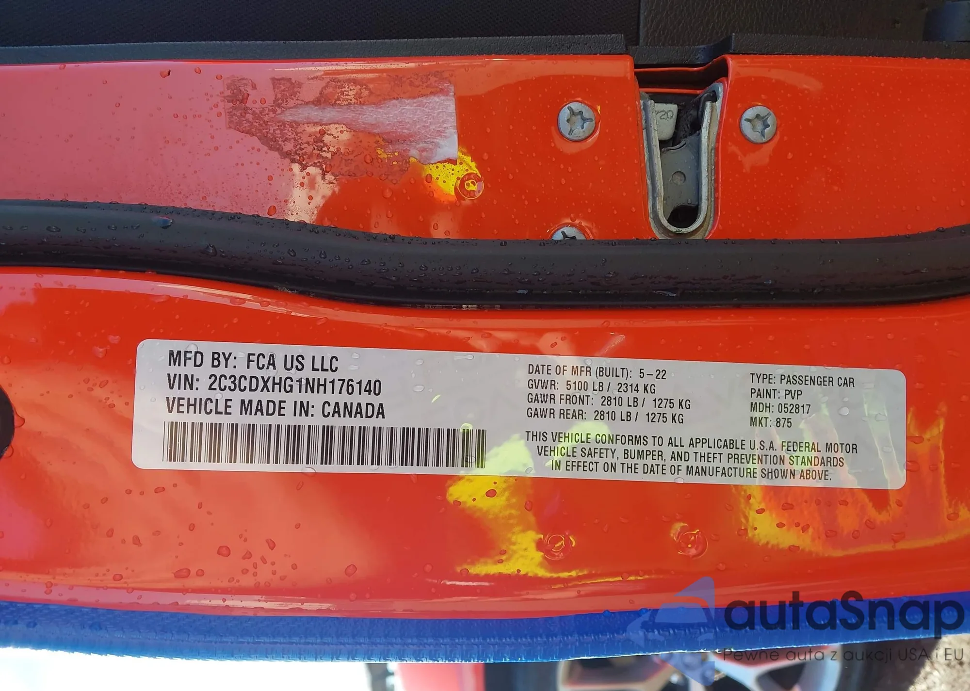 LOT: 43914628 VIN: 2C3CDXHG1NH176140