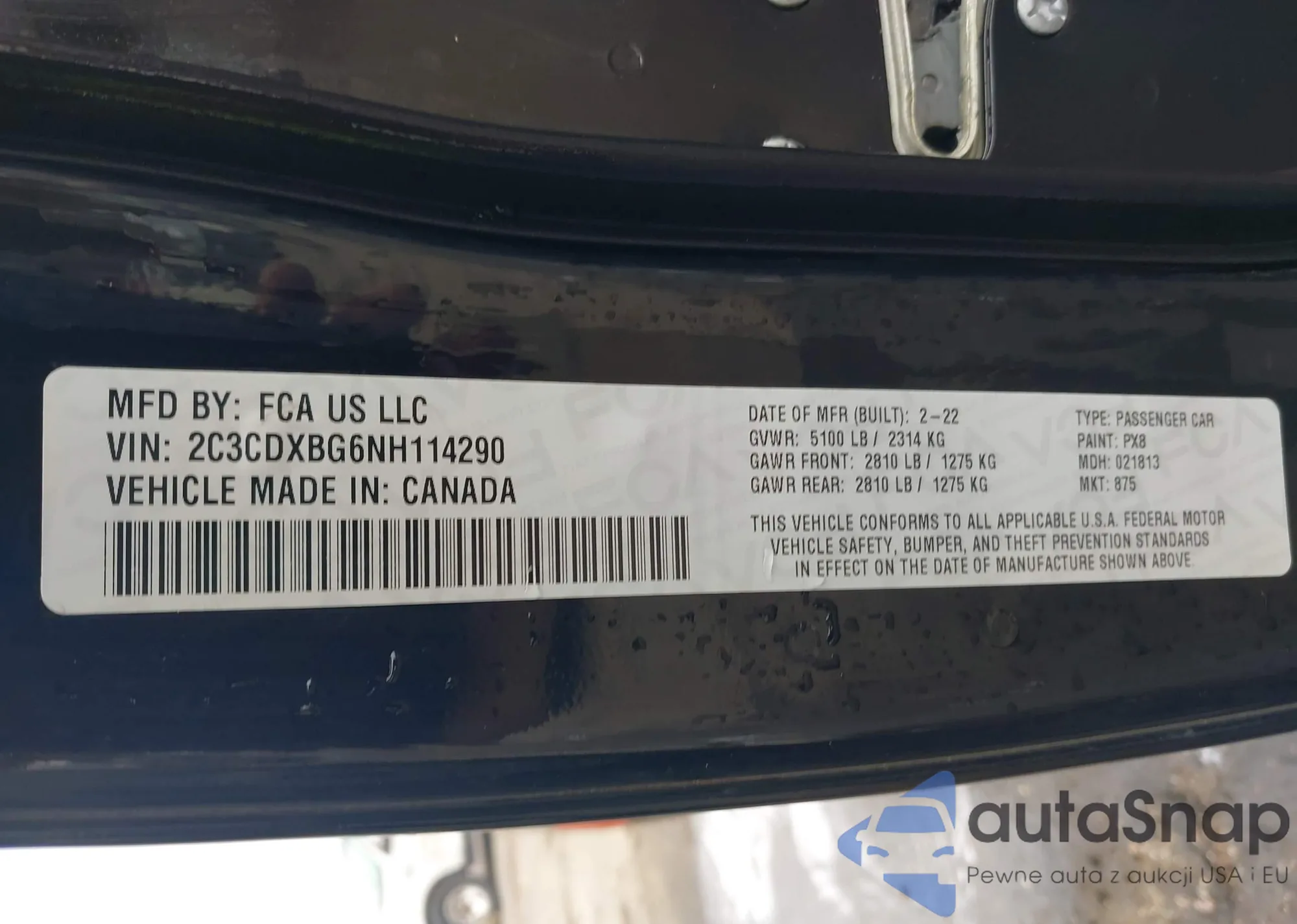 • VIN 2C3CDXBG6NH114290