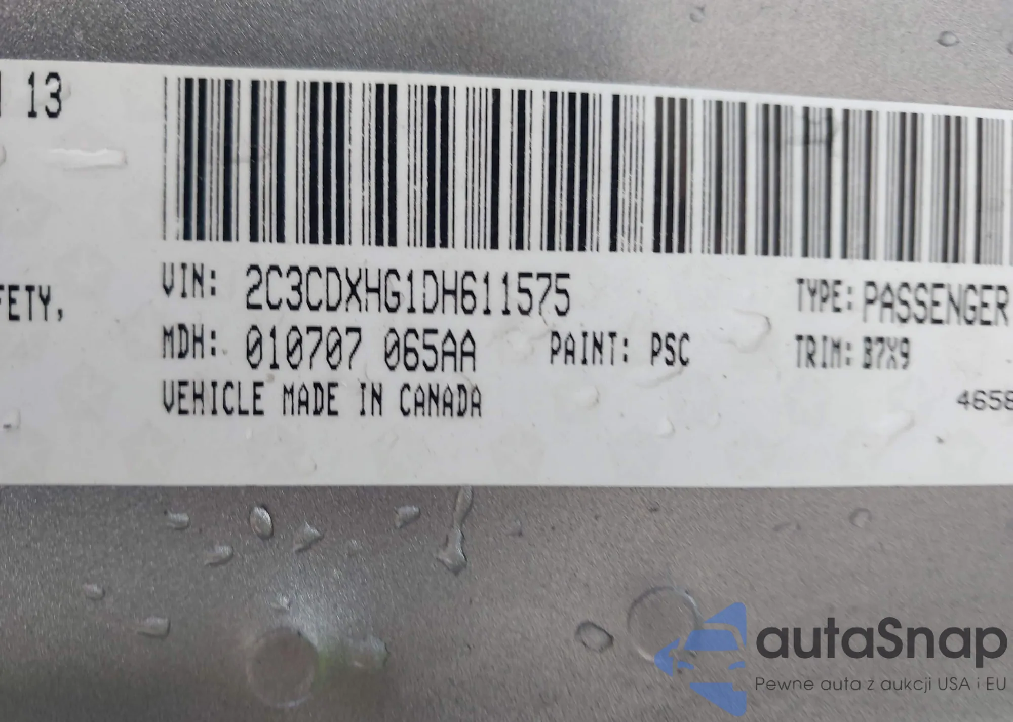 • VIN 2C3CDXHG1DH611575