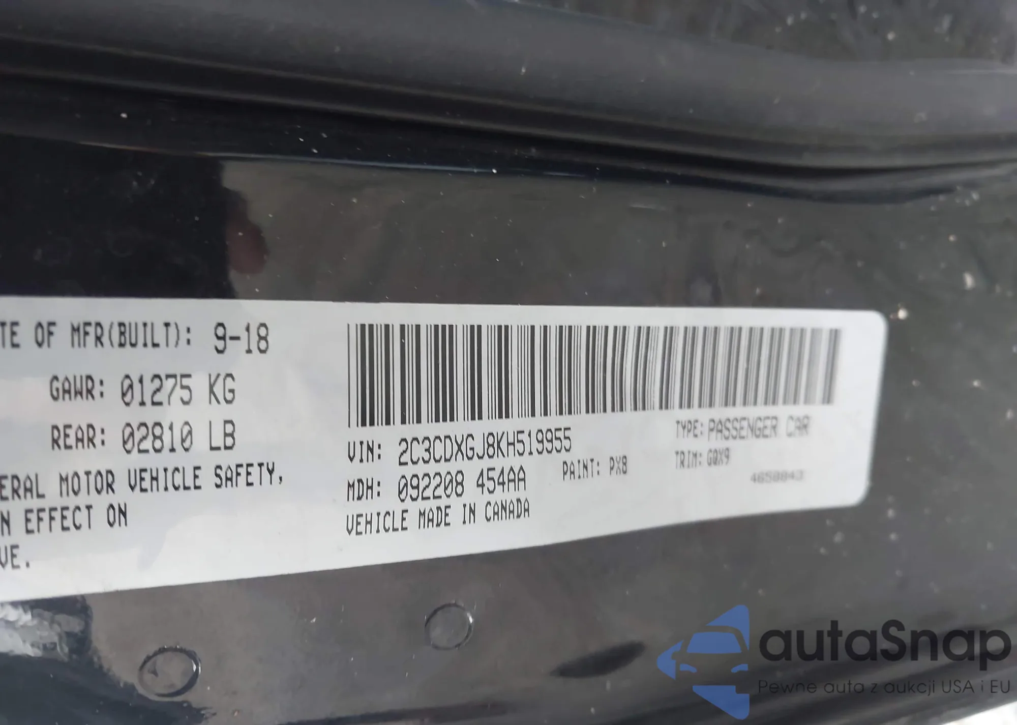 LOT: 44146785 VIN: 2C3CDXGJ8KH519955