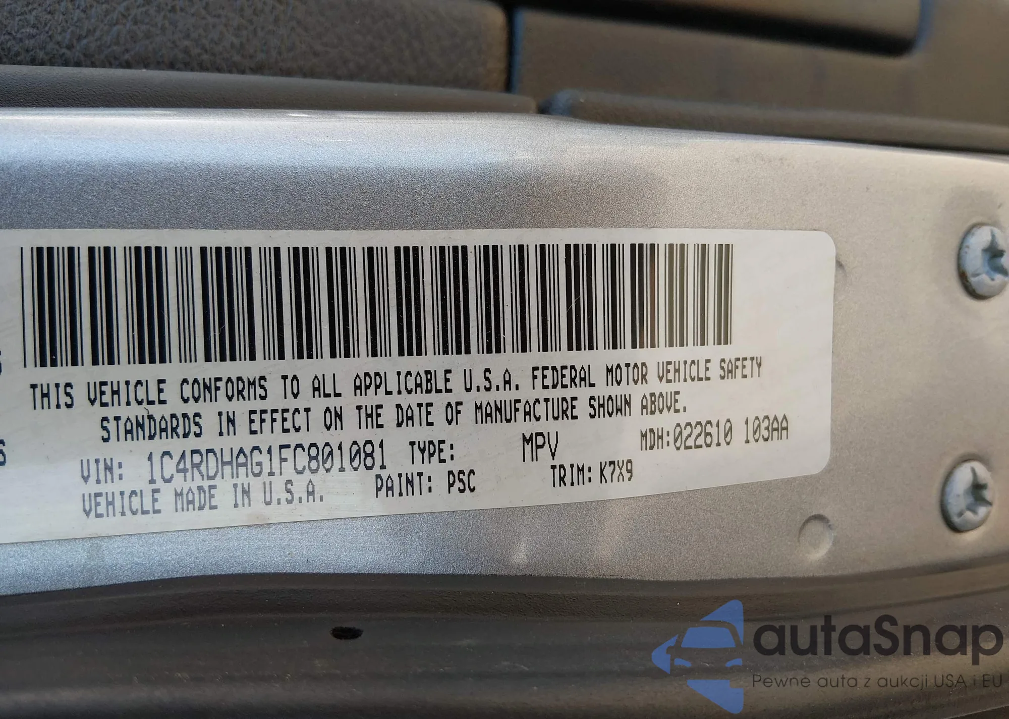 • VIN 1C4RDHAG1FC801081