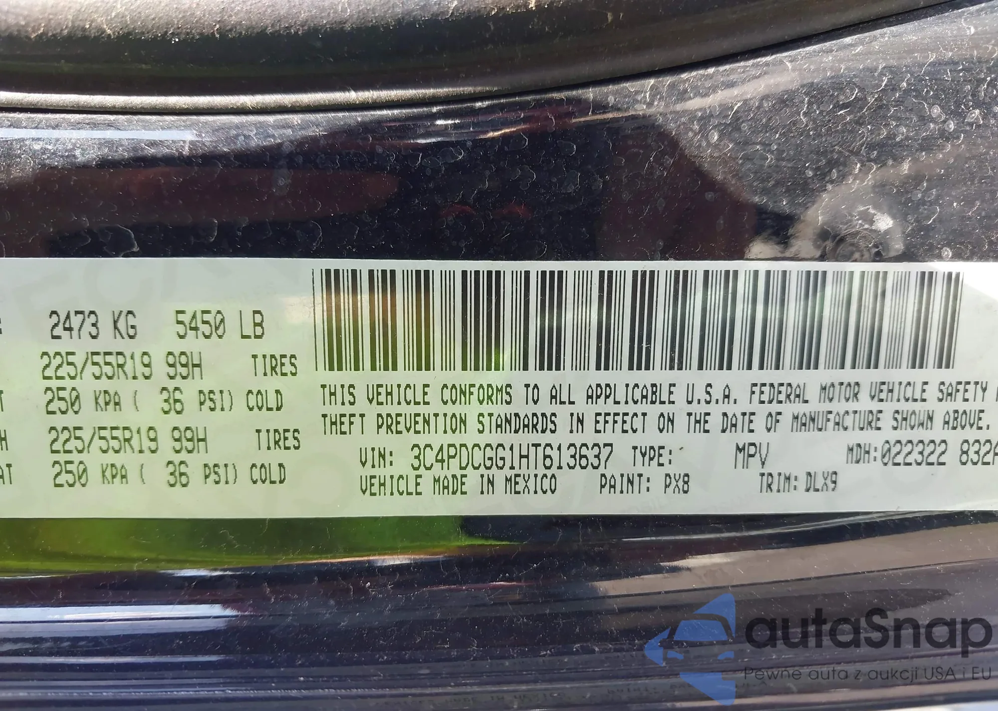 LOT: 43369333 VIN: 3C4PDCGG1HT613637