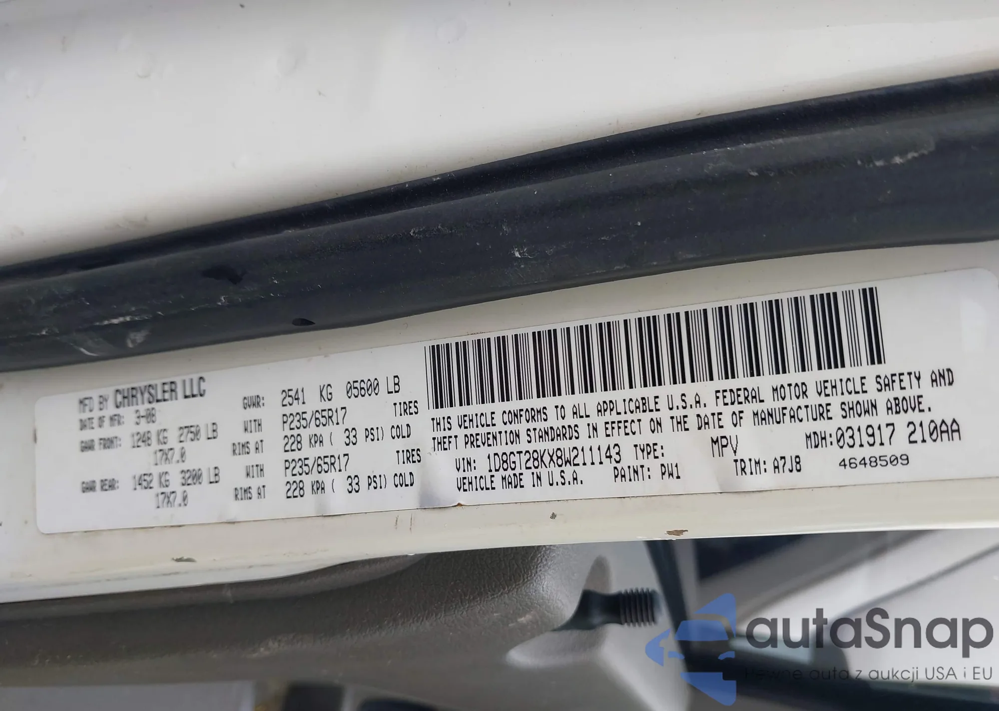 • VIN 1D8GU28KX8W241210