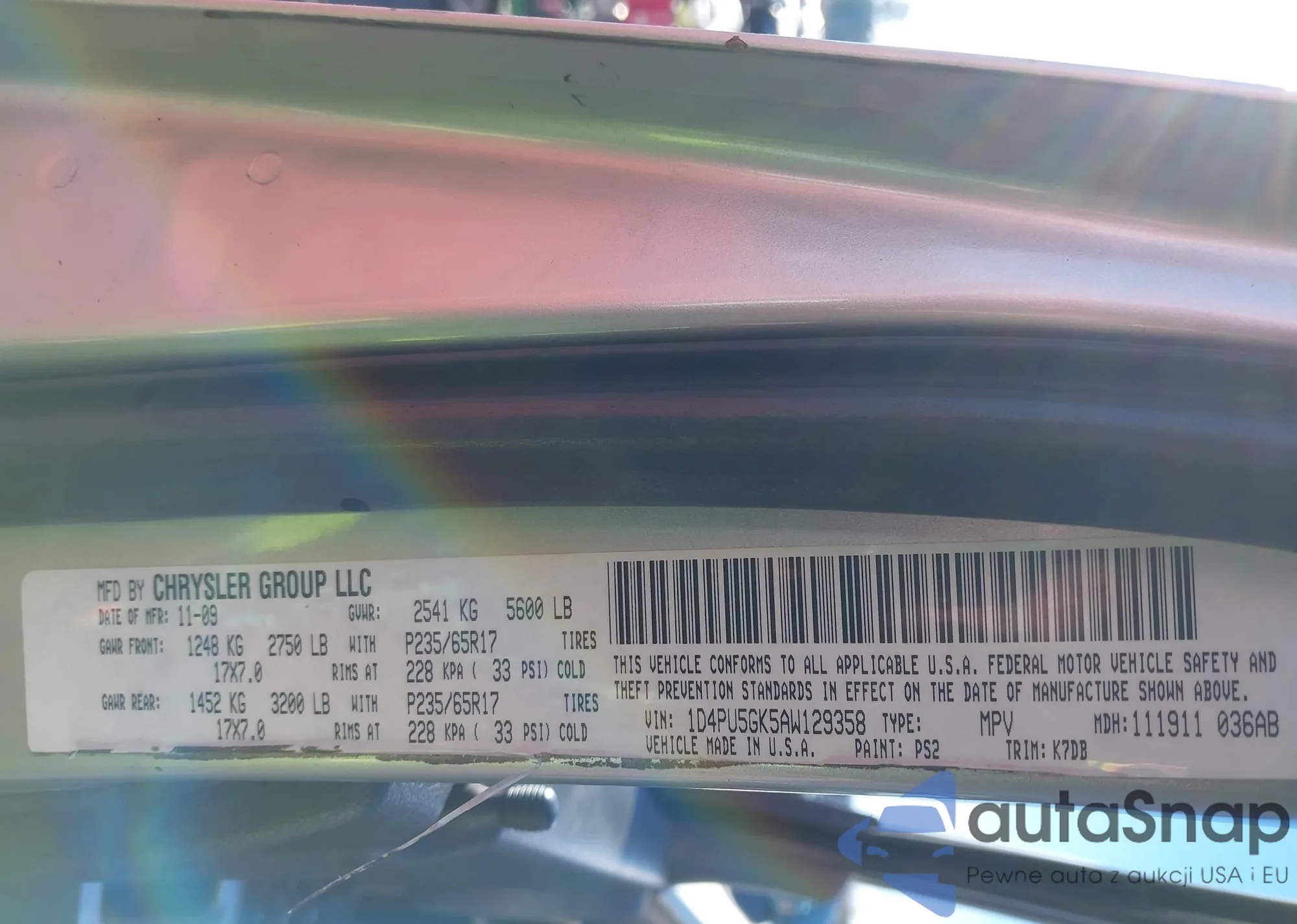 • VIN 1D4PU5GK5AW129358