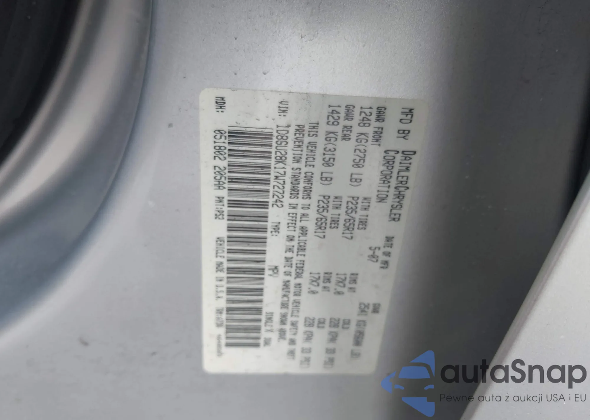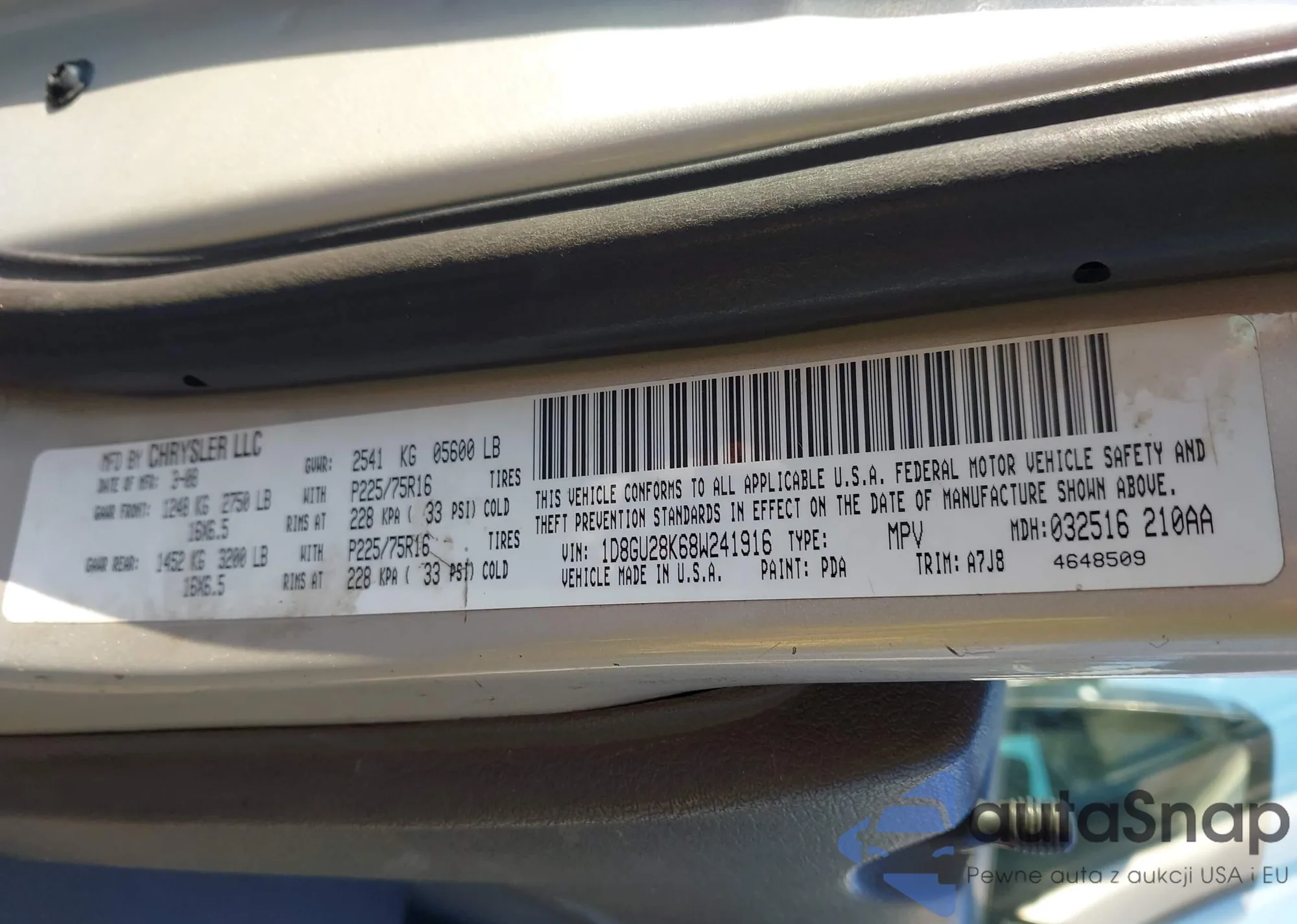 • VIN 1D8GU28K68W241916