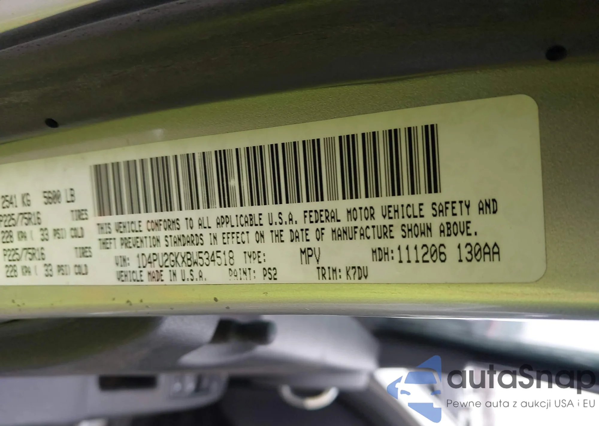 • VIN 1D4PU2GKXBW534518