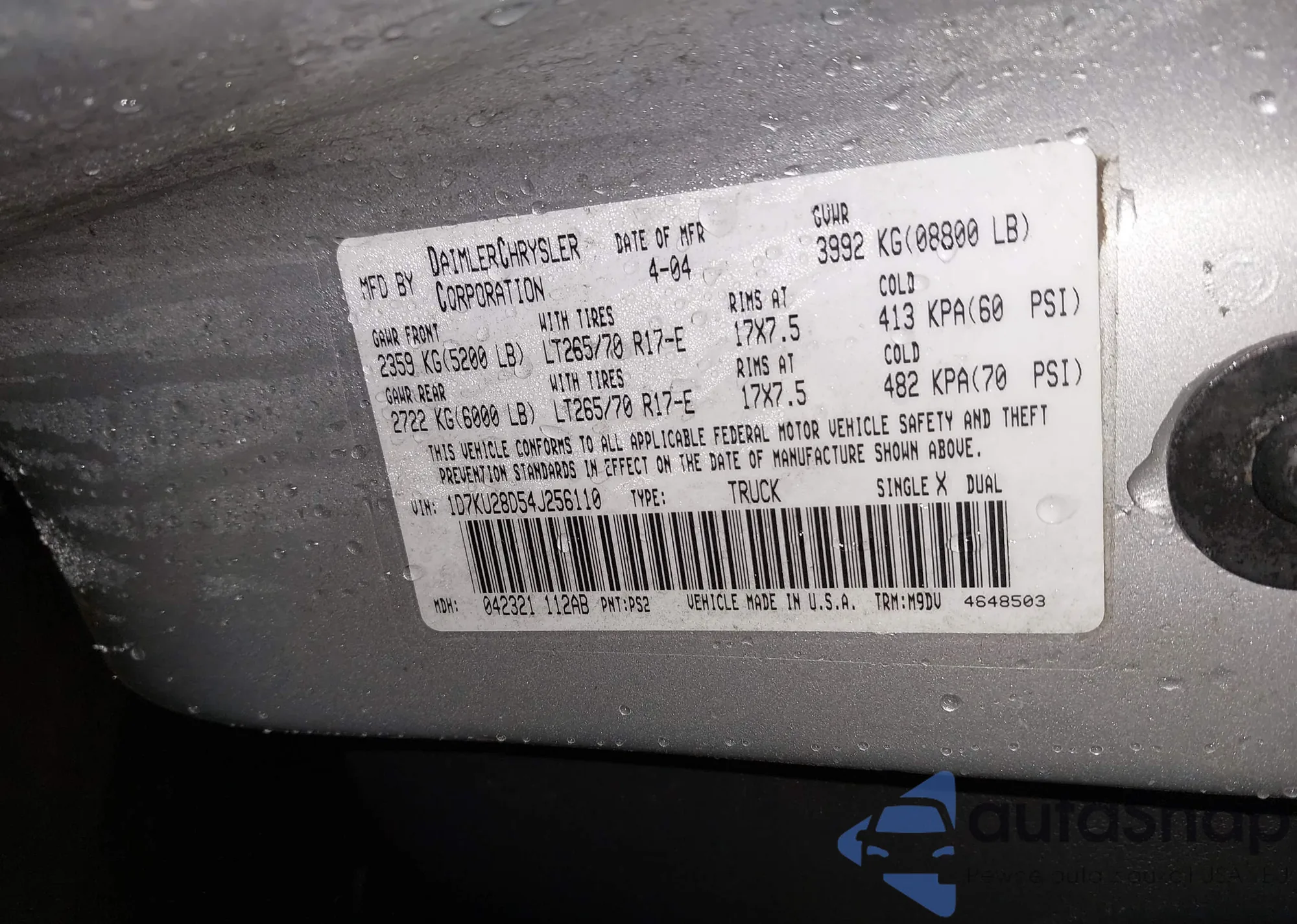 • VIN 1D7KU28D54J256110