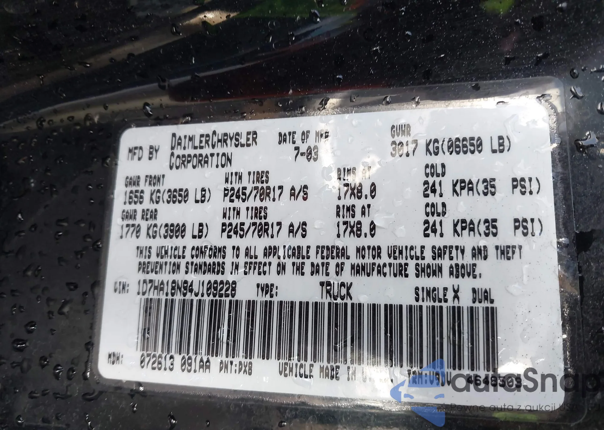 LOT: 43685781 VIN: 1D7HA18N94J109228