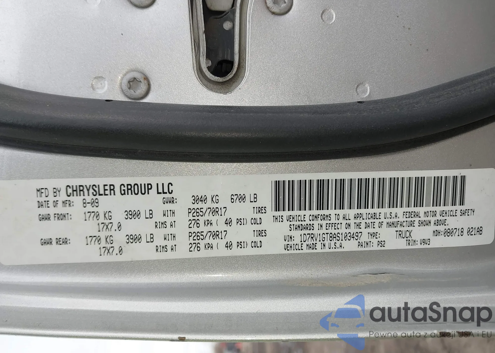 • VIN 1D7RV1GT8AS103497