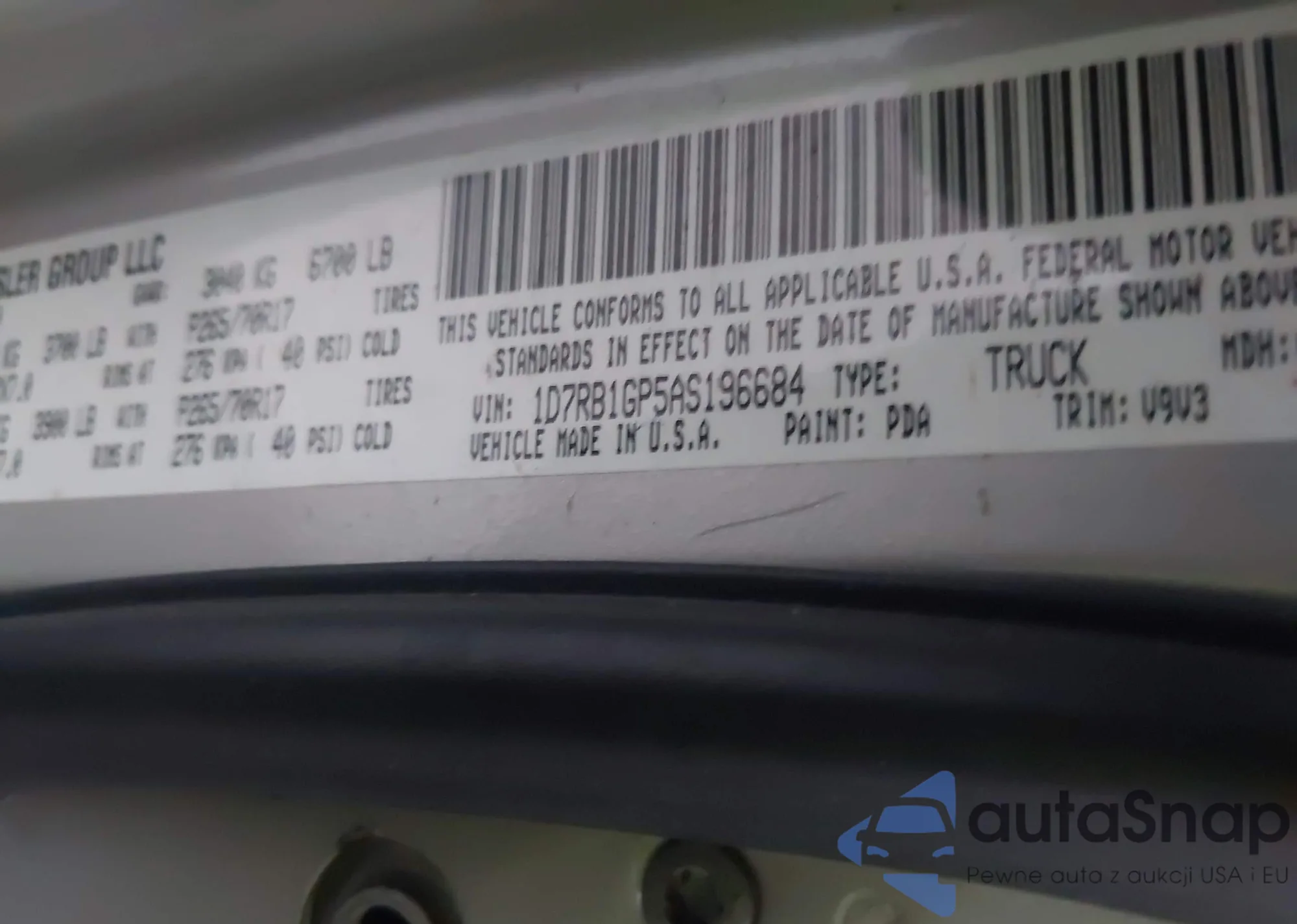 • VIN 1D7RB1GP5AS196684