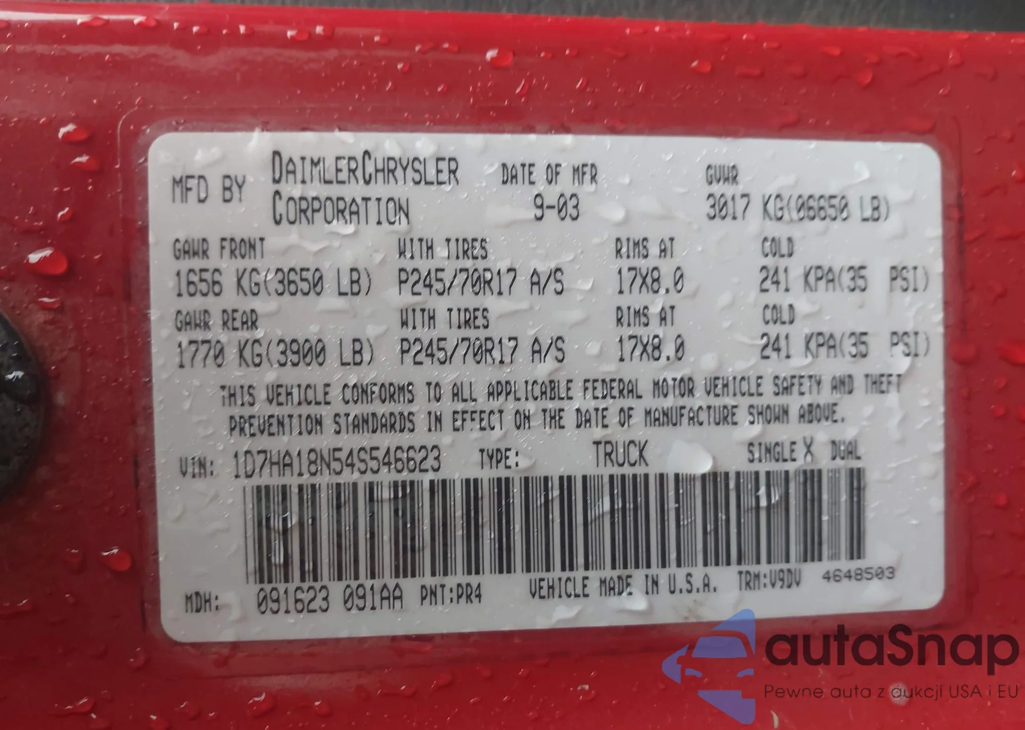LOT: 44340166 VIN: 1D7HA18N54S546623