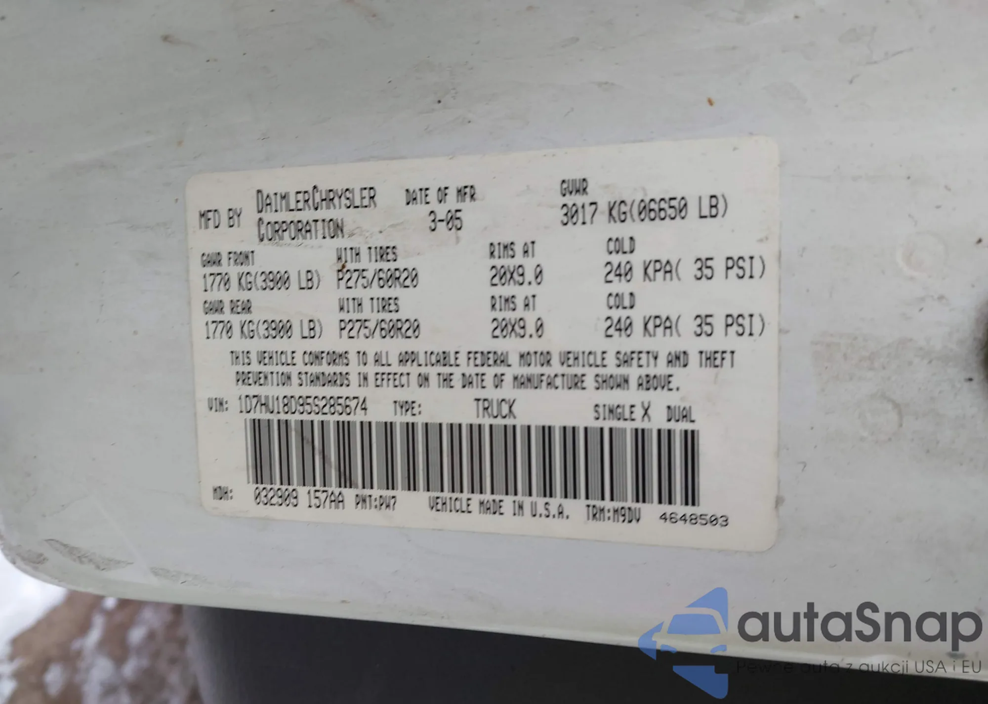 • VIN 1D7HU18D95S285674
