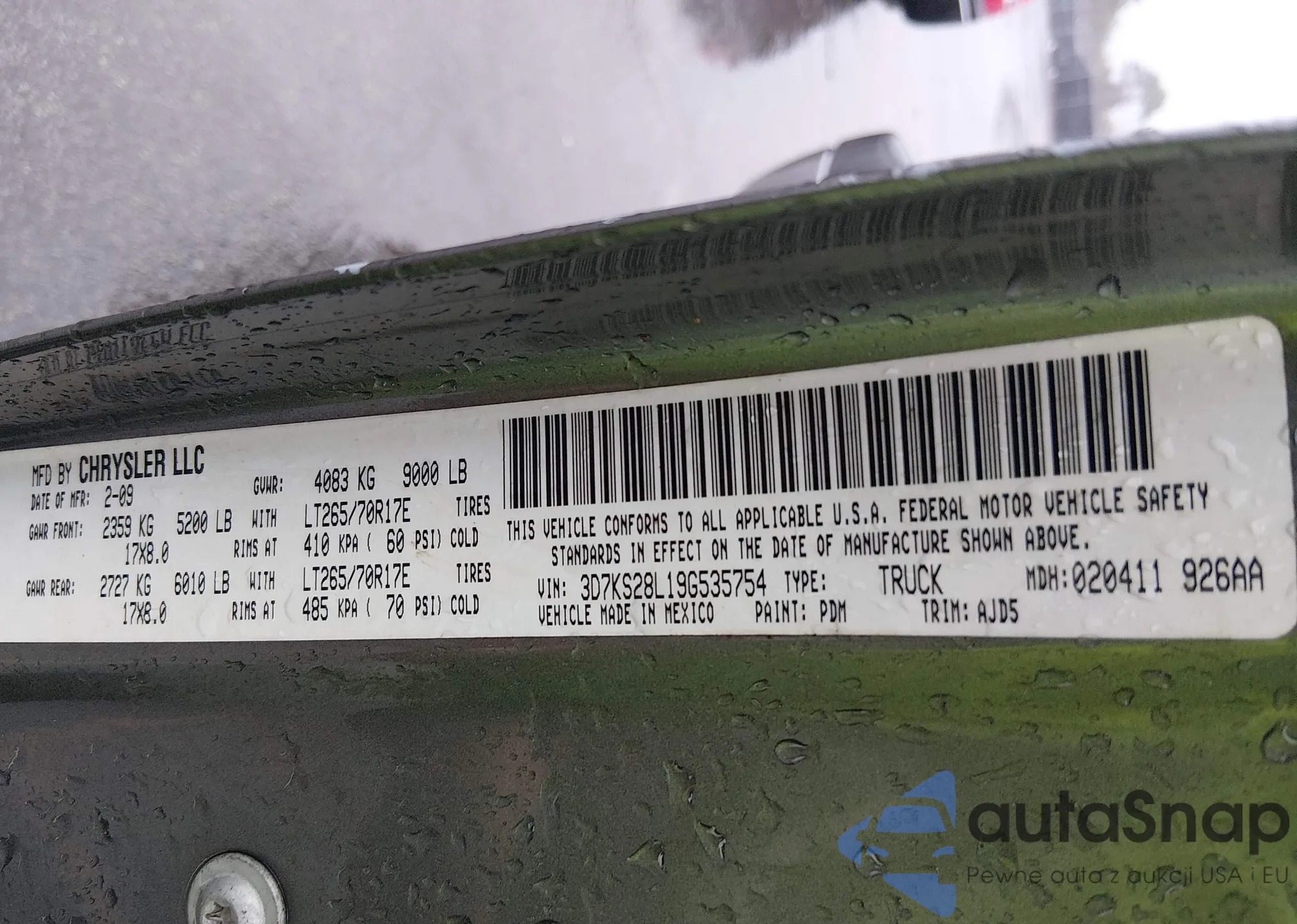 • VIN 3D7KS28L19G535754