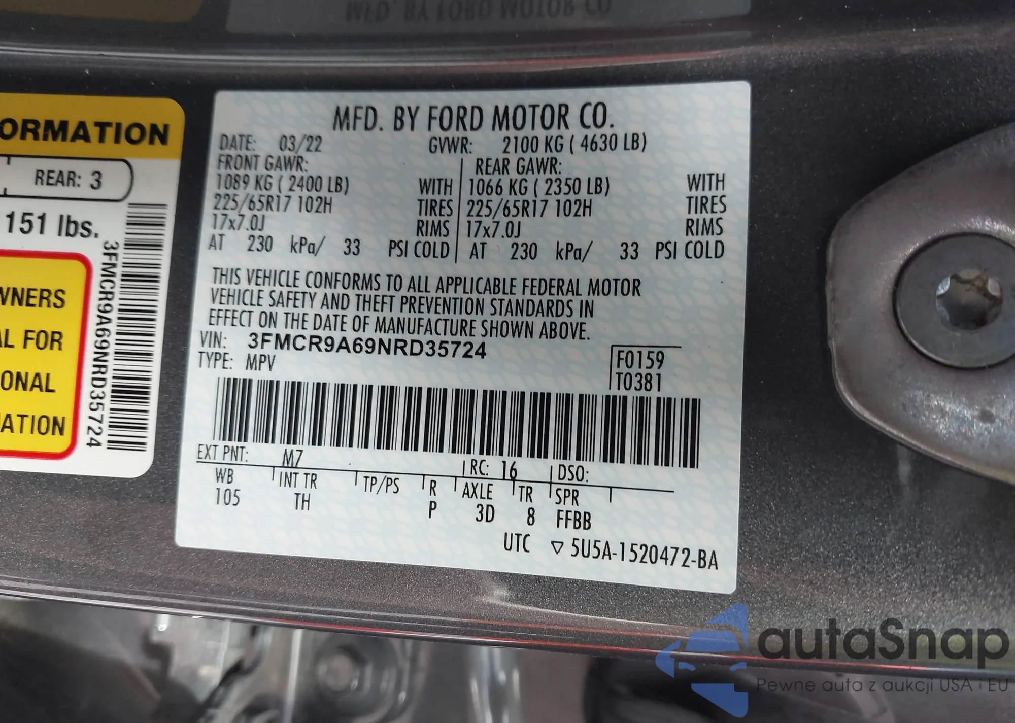 • VIN 3FMCR9A69NRD35724