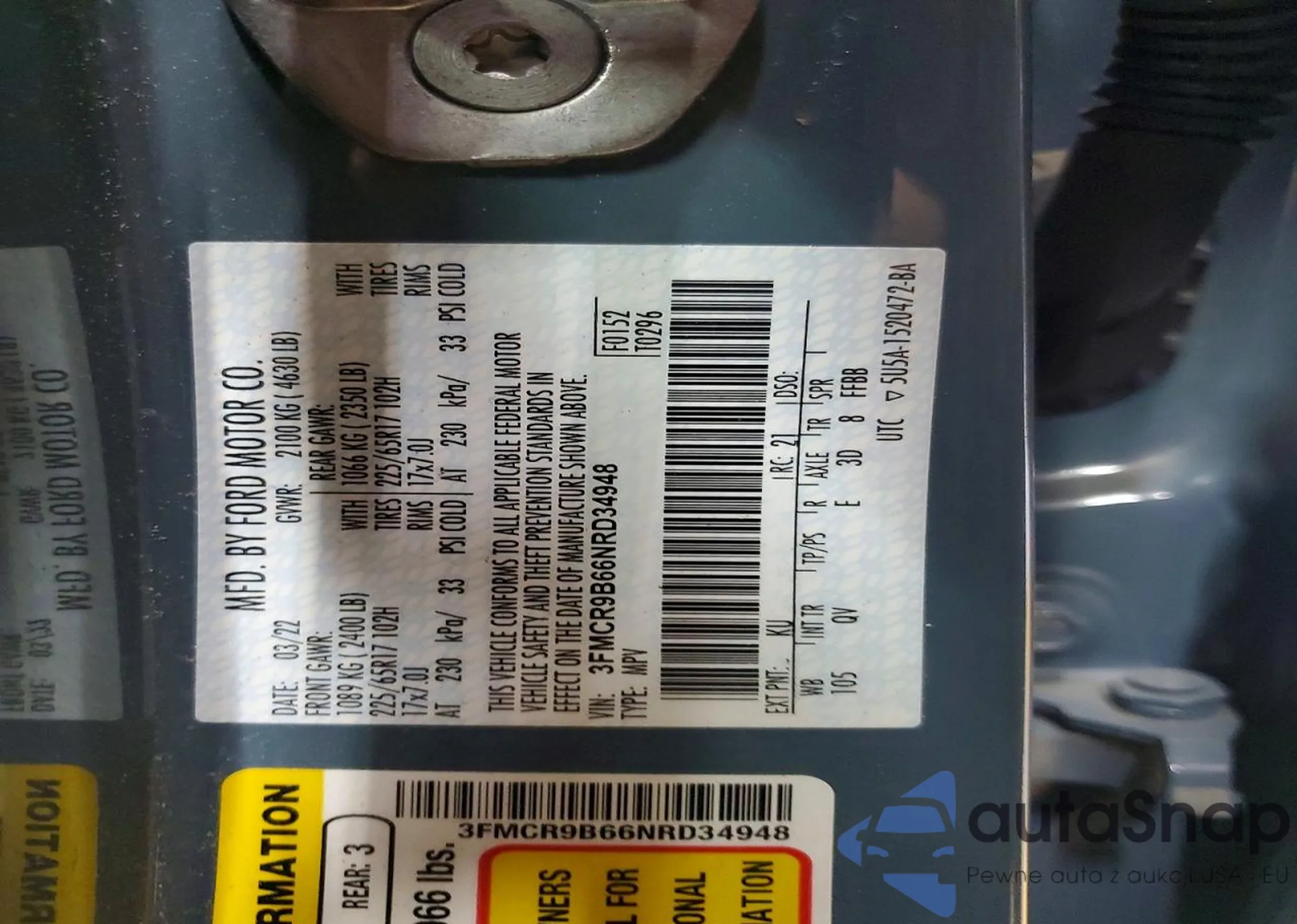 • VIN 3FMCR9B66NRD34948