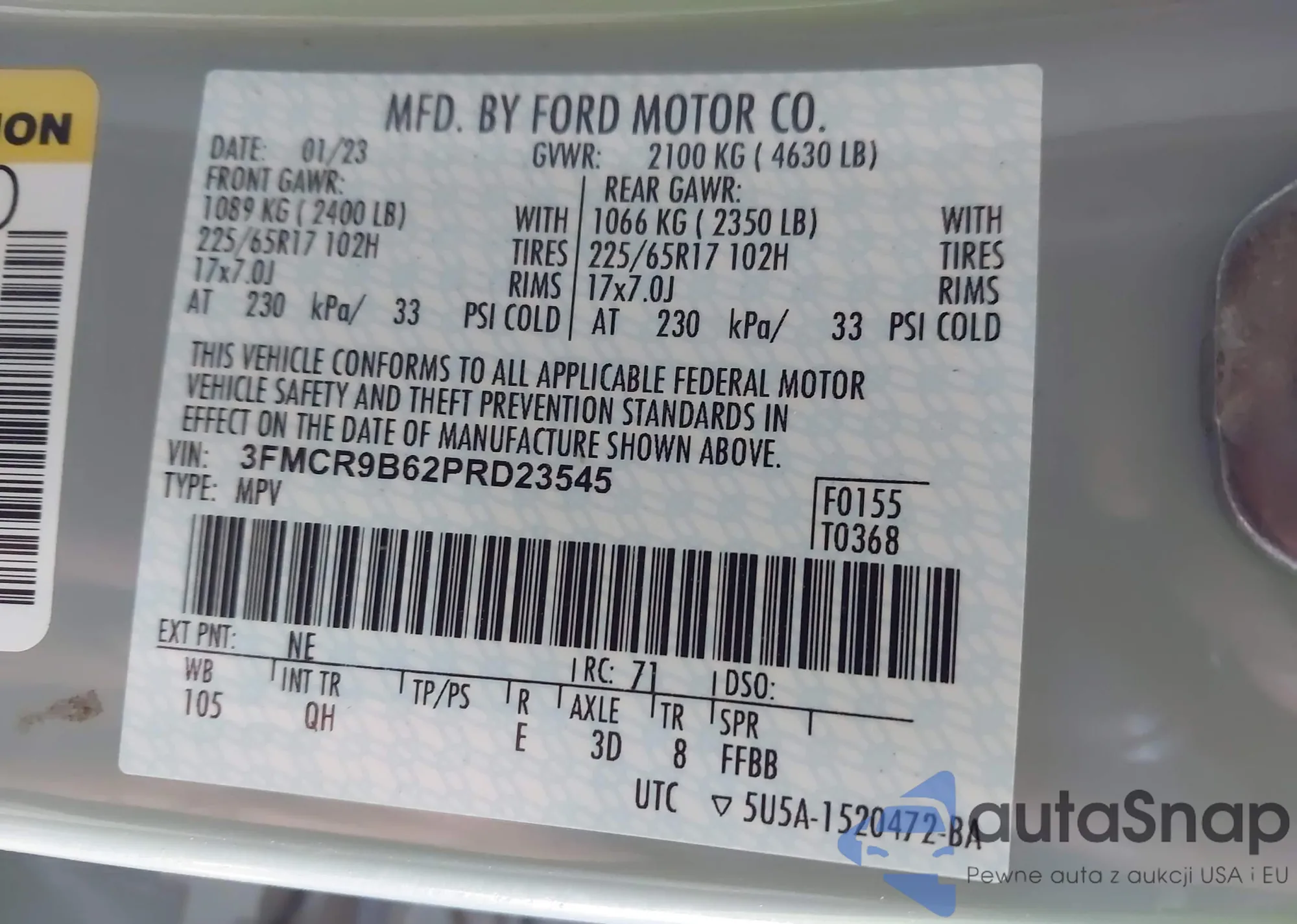• VIN 3FMCR9B62PRD23545