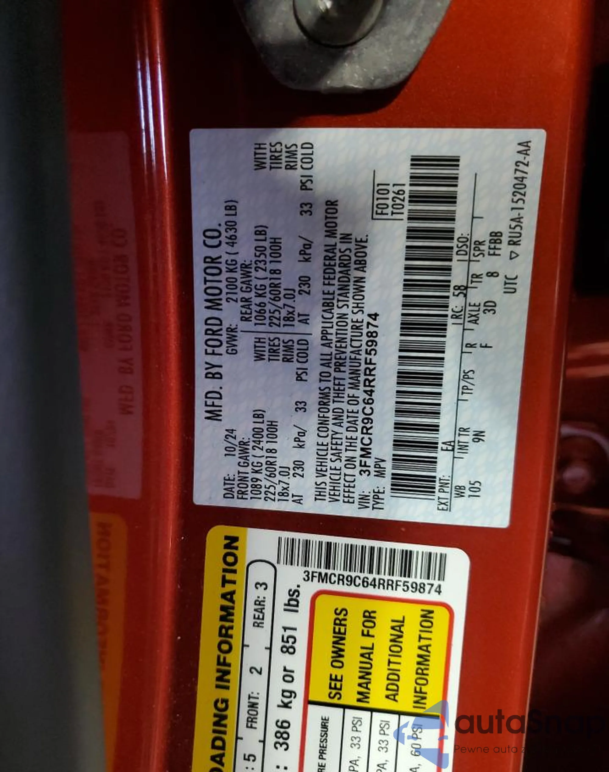 • VIN 3FMCR9A63MRA14874