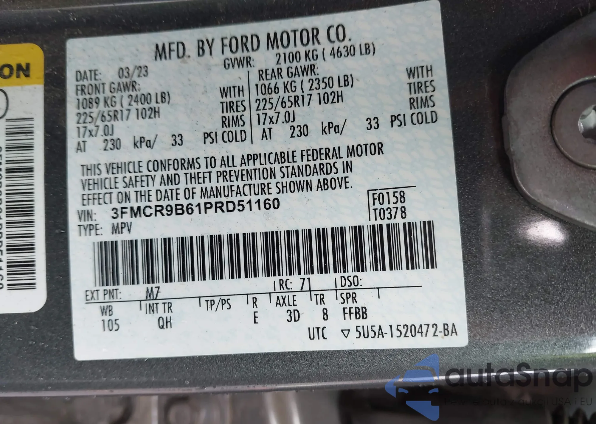 LOT: 43605921 VIN: 3FMCR9B61PRD51160