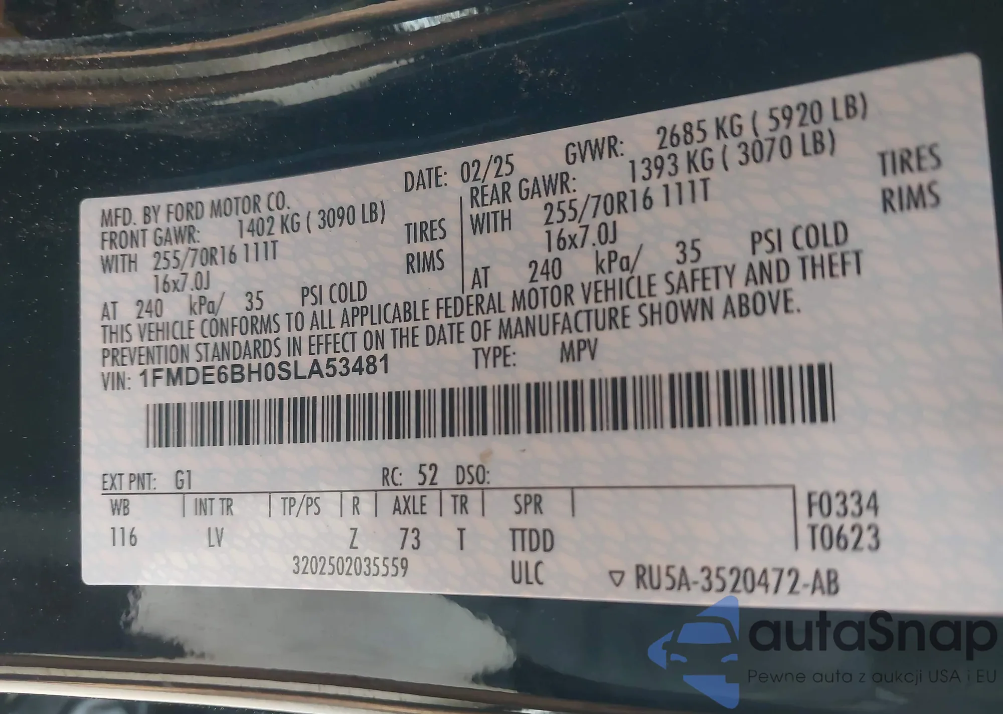 LOT: 73005345 VIN: 1FMEE5BP5NLB36754
