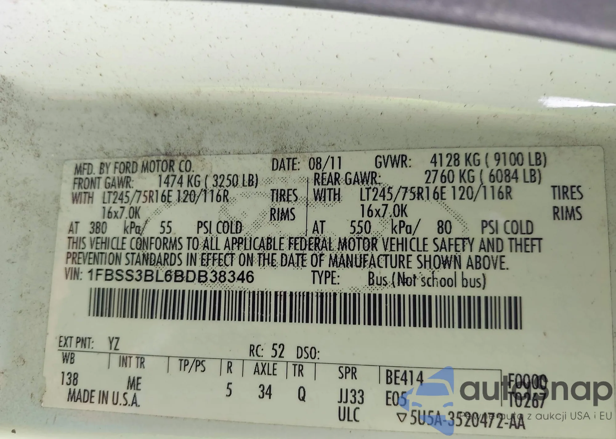 • VIN 1FBSS3BL6BDB38346