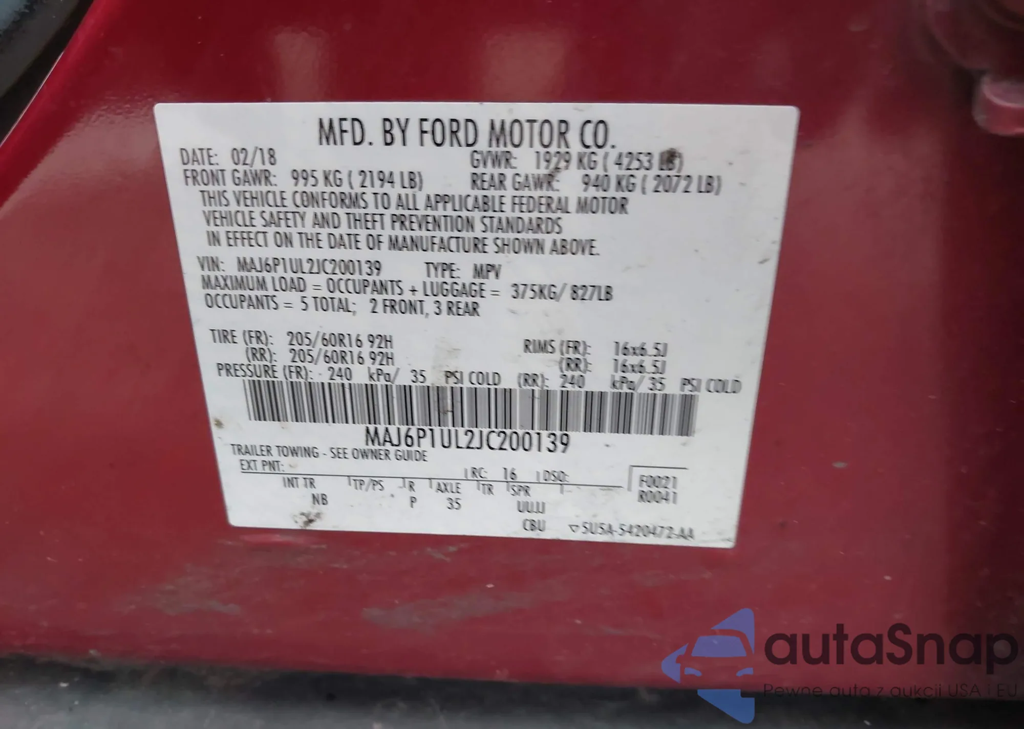 • VIN MAJ6P1UL2JC200139
