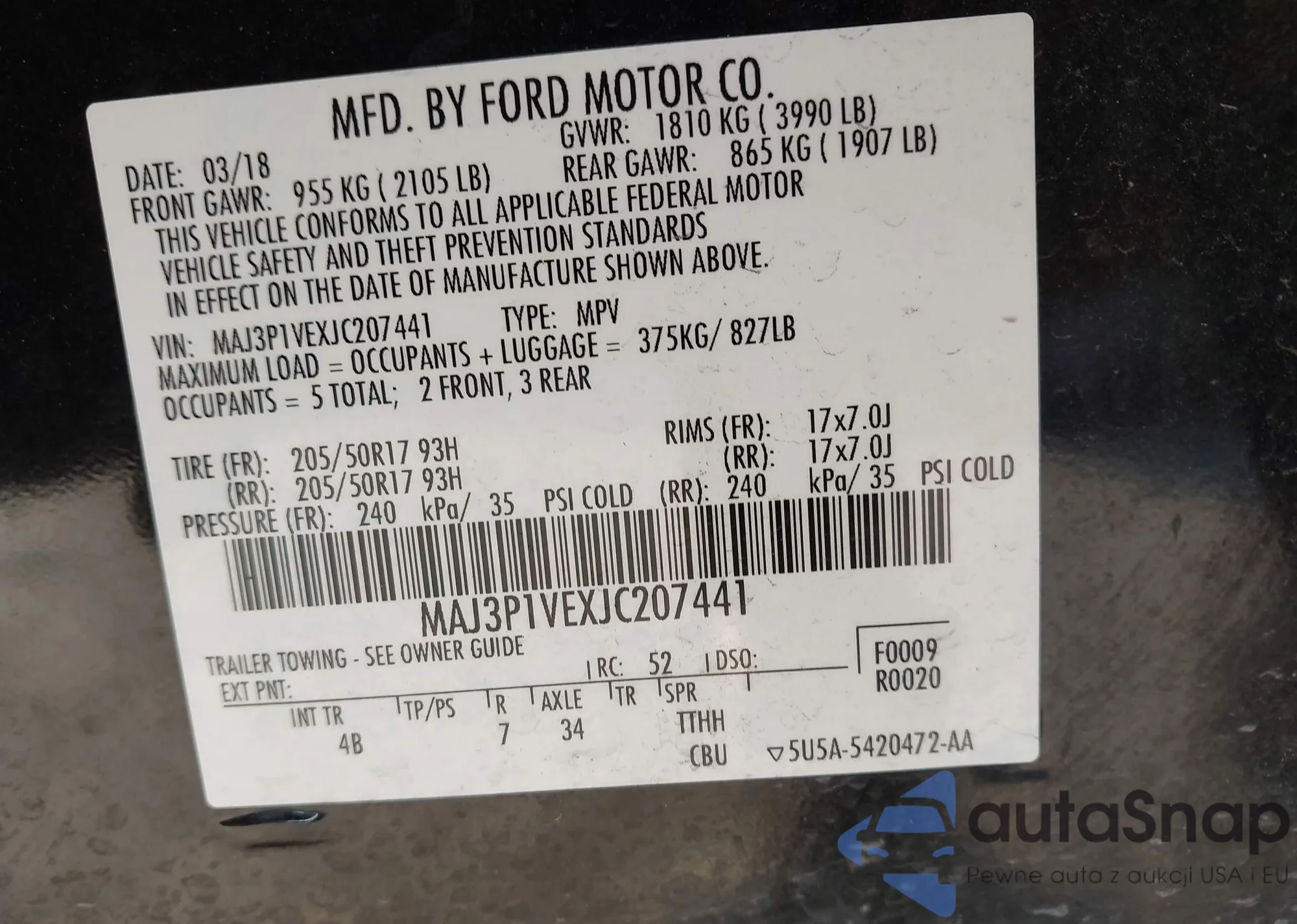 • VIN MAJ6P1SL5JC213678
