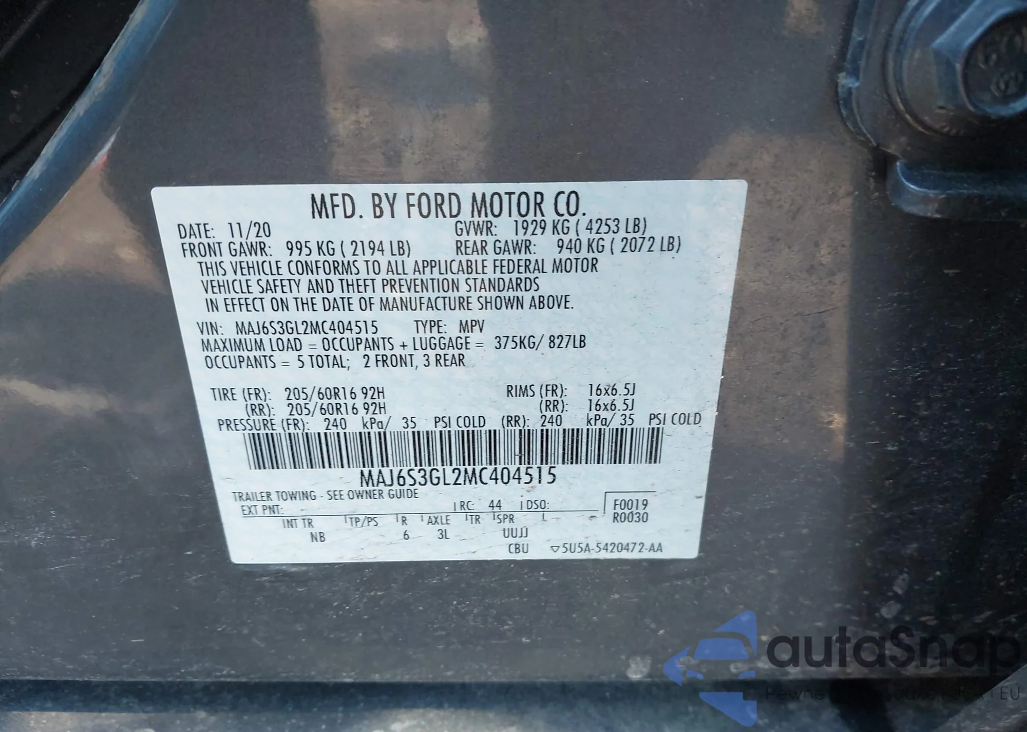 • VIN MAJ6S3GL2MC404515