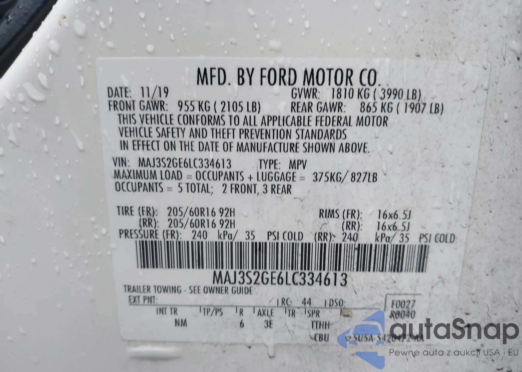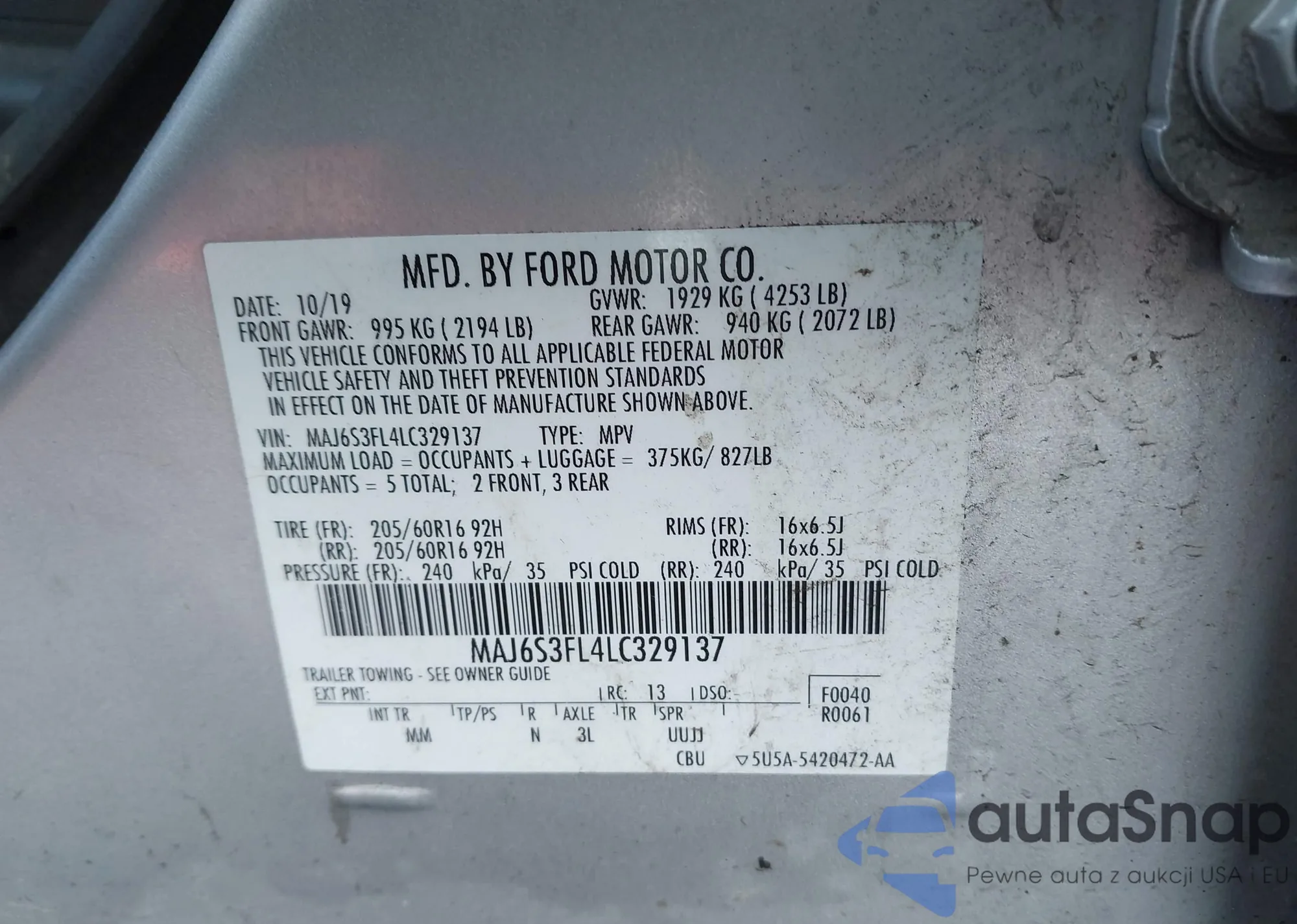 • VIN MAJ6S3FL4LC329137
