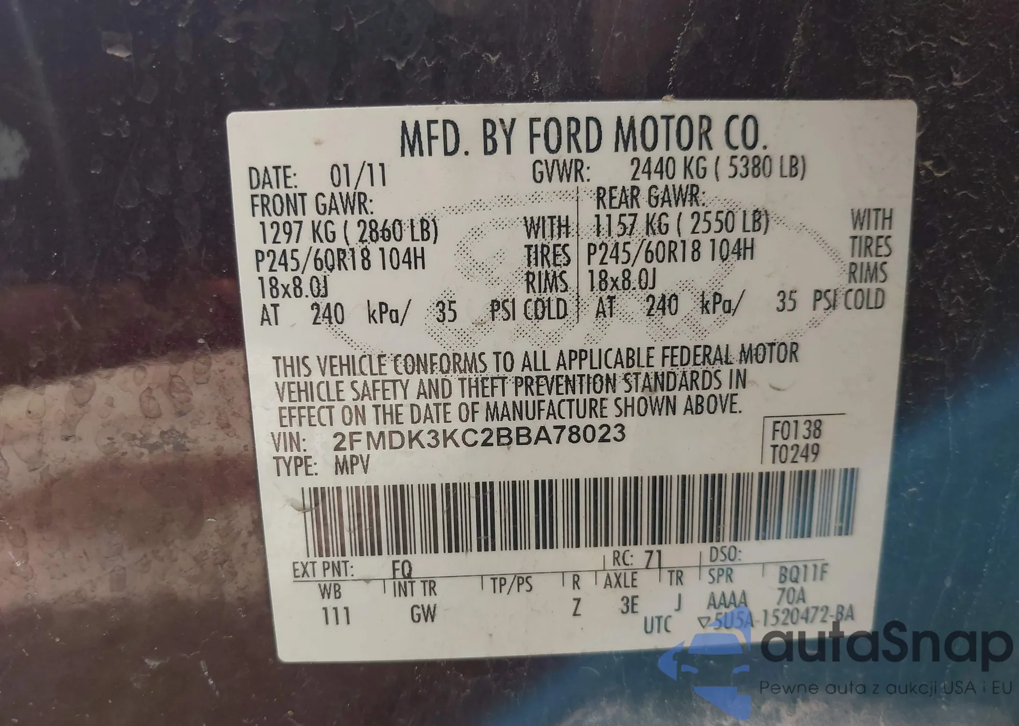 • VIN 2FMDK3KC2BBA78023