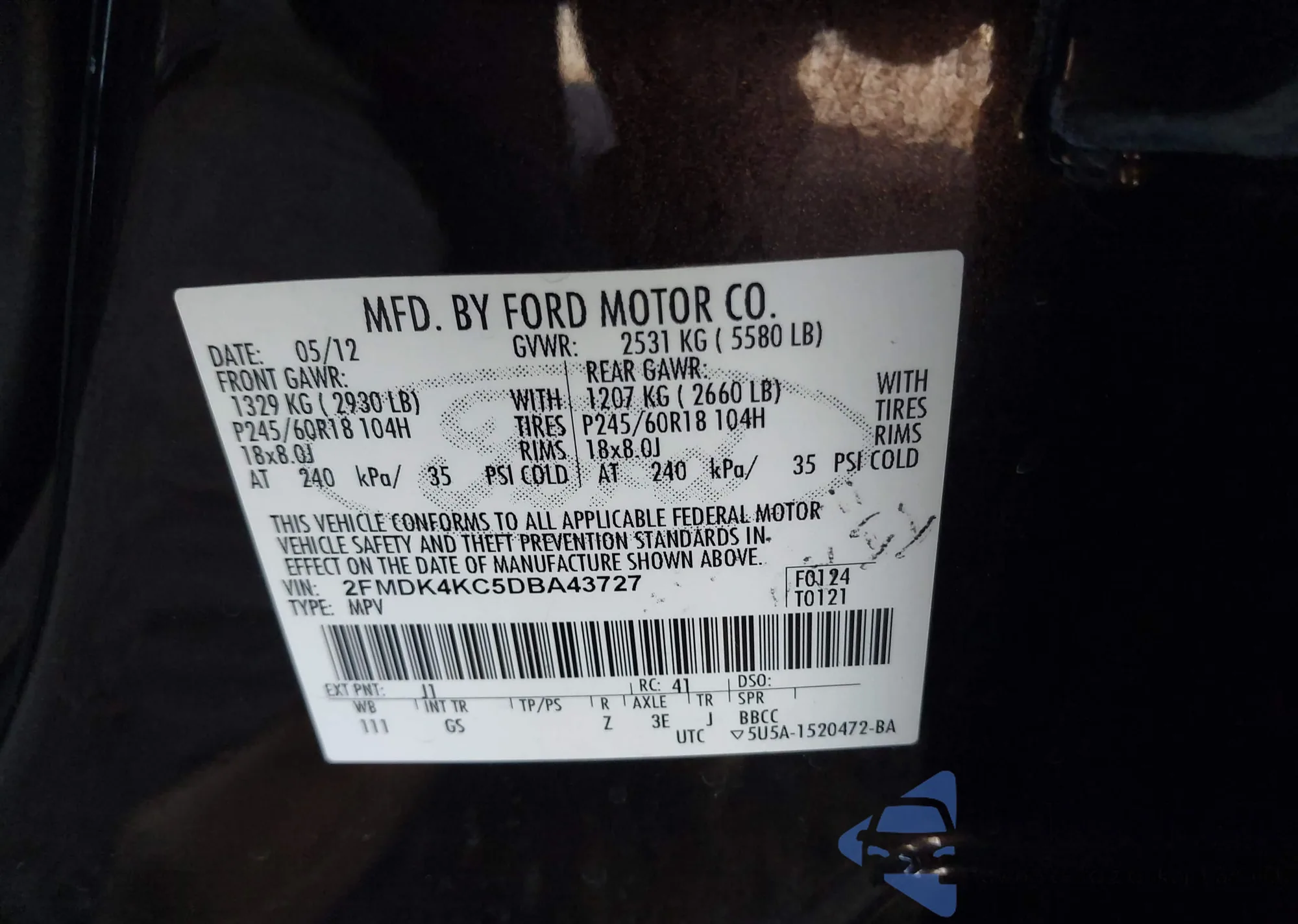 • VIN 2FMDK4KC5DBA43727