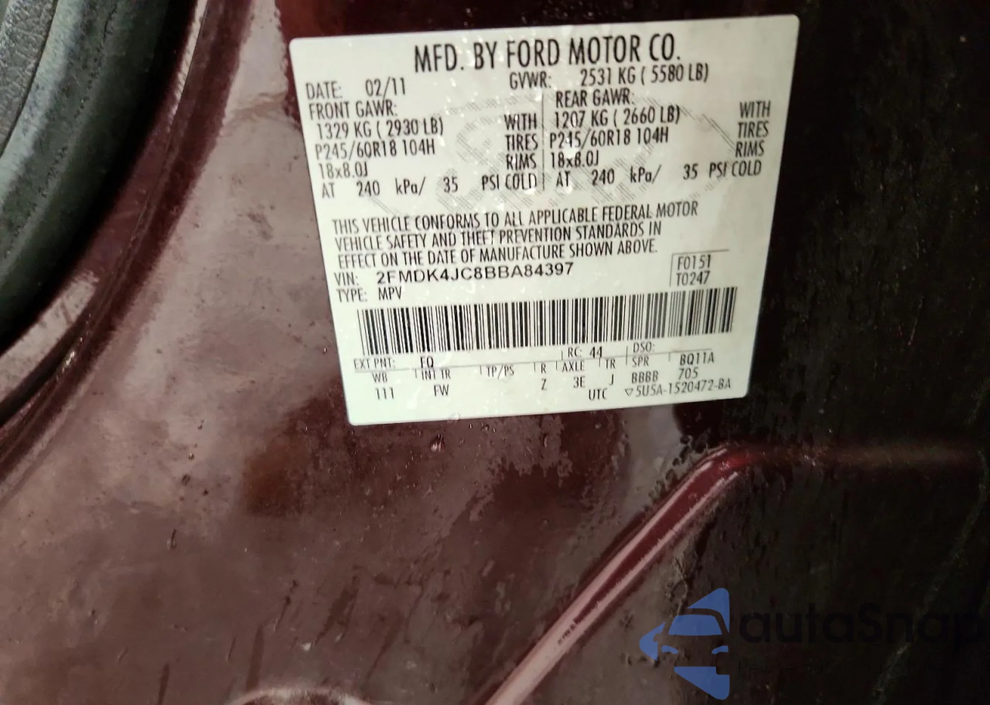 • VIN 2FMDK4JC8BBA84397