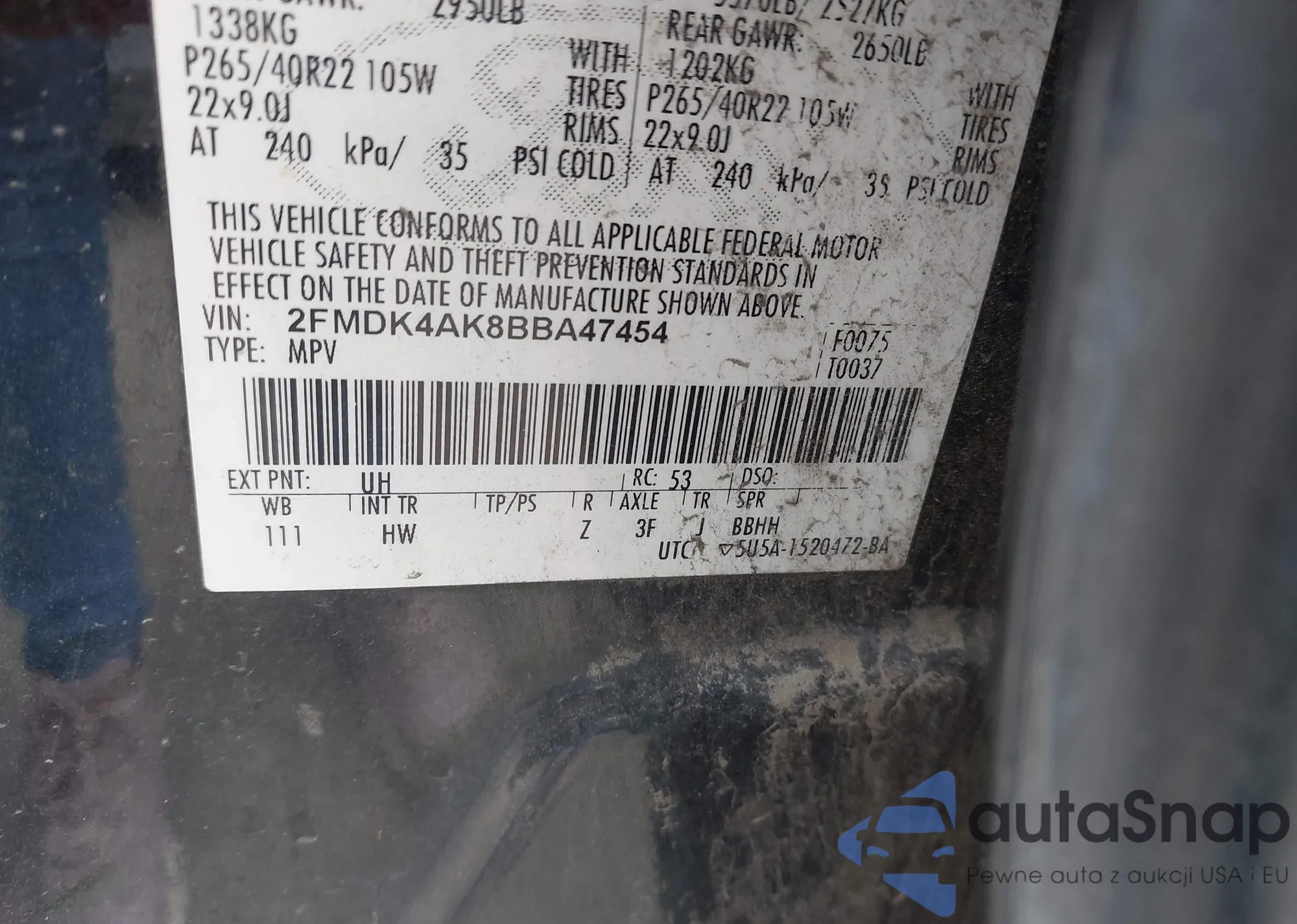 • VIN 2FMDK4AK8BBA47454