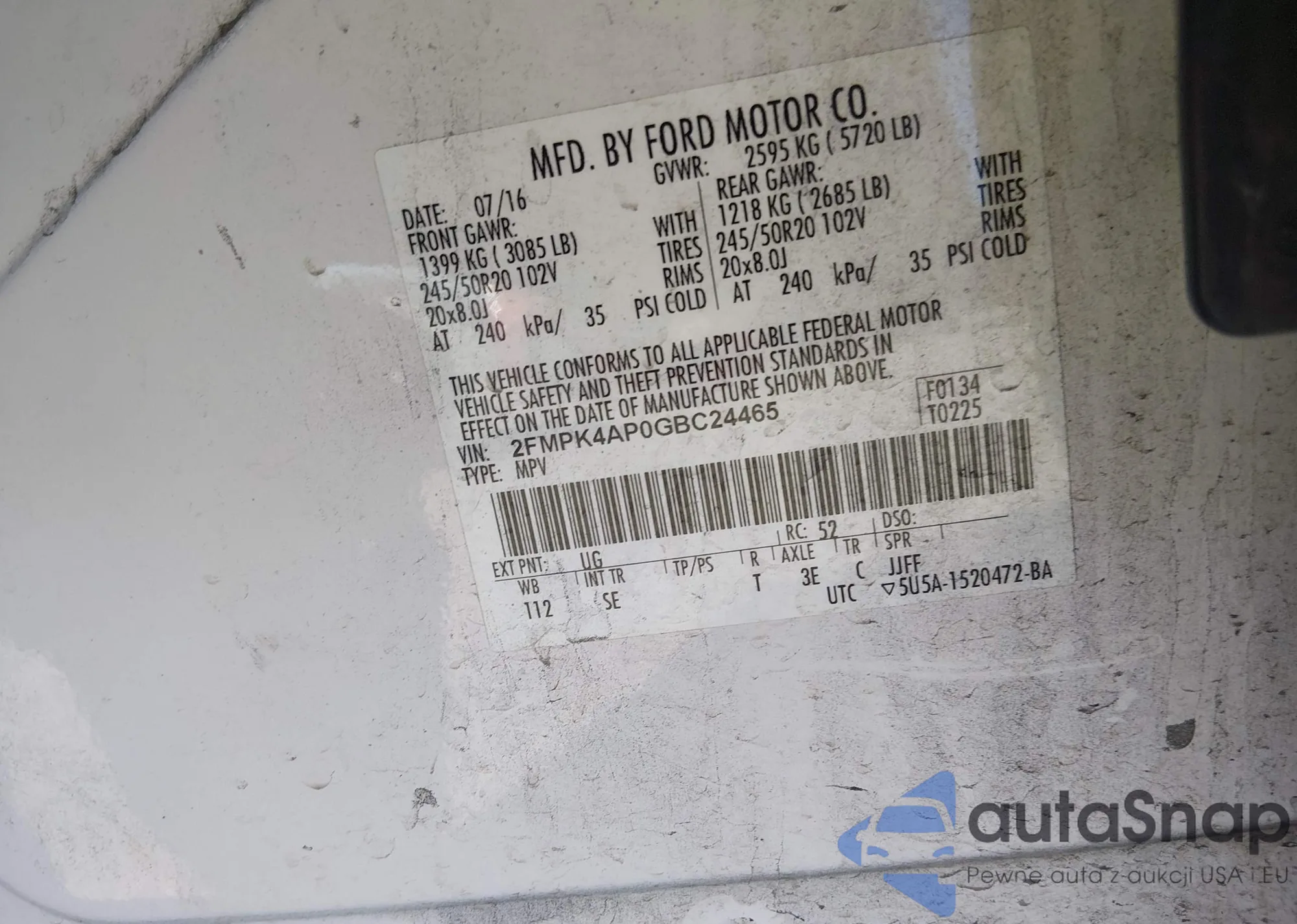 • VIN 2FMPK4AP0GBC24465
