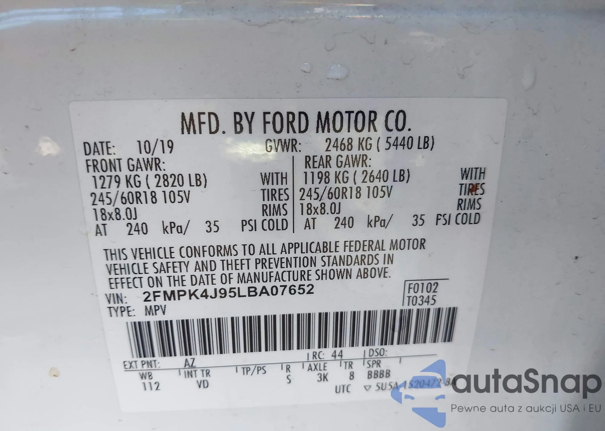 • VIN 2FMPK4J95LBA07652