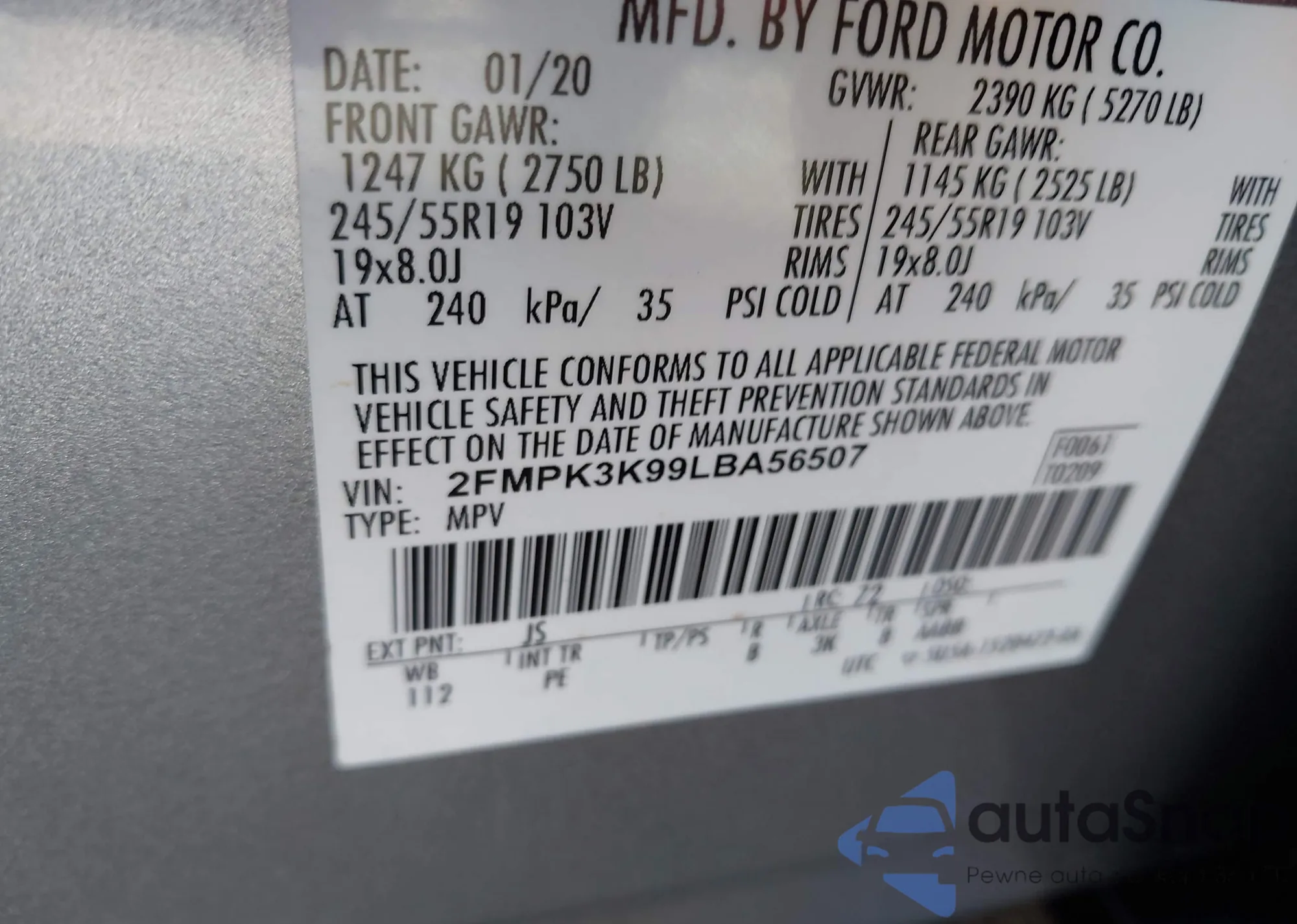 • VIN 2FMPK3K99LBA56507