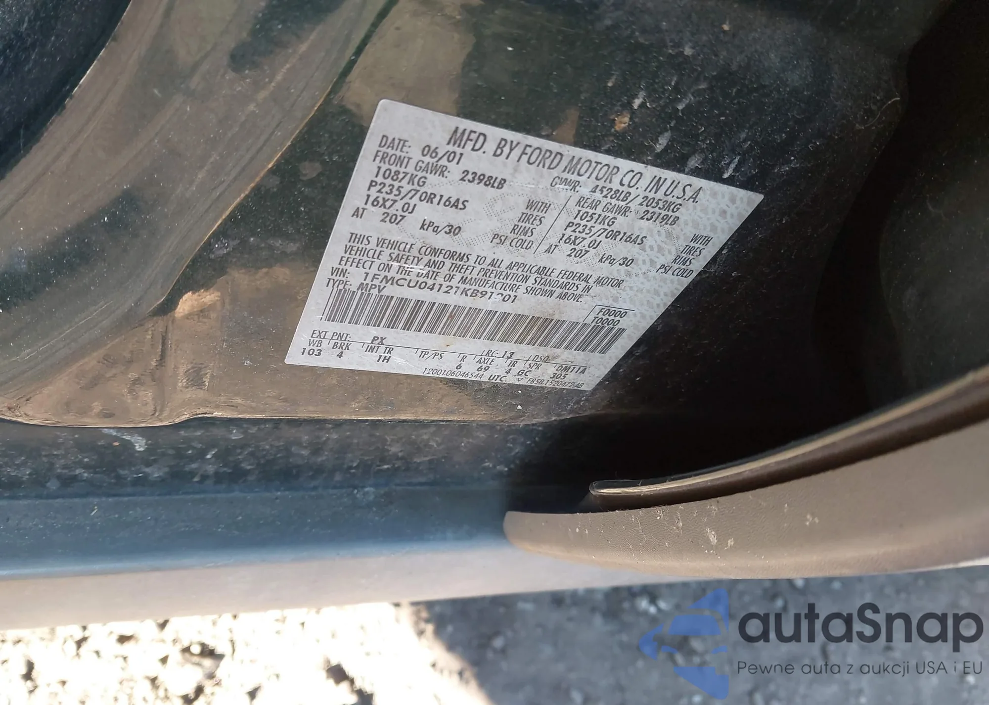 LOT: 44186715 VIN: 1FMCU04121KB91801