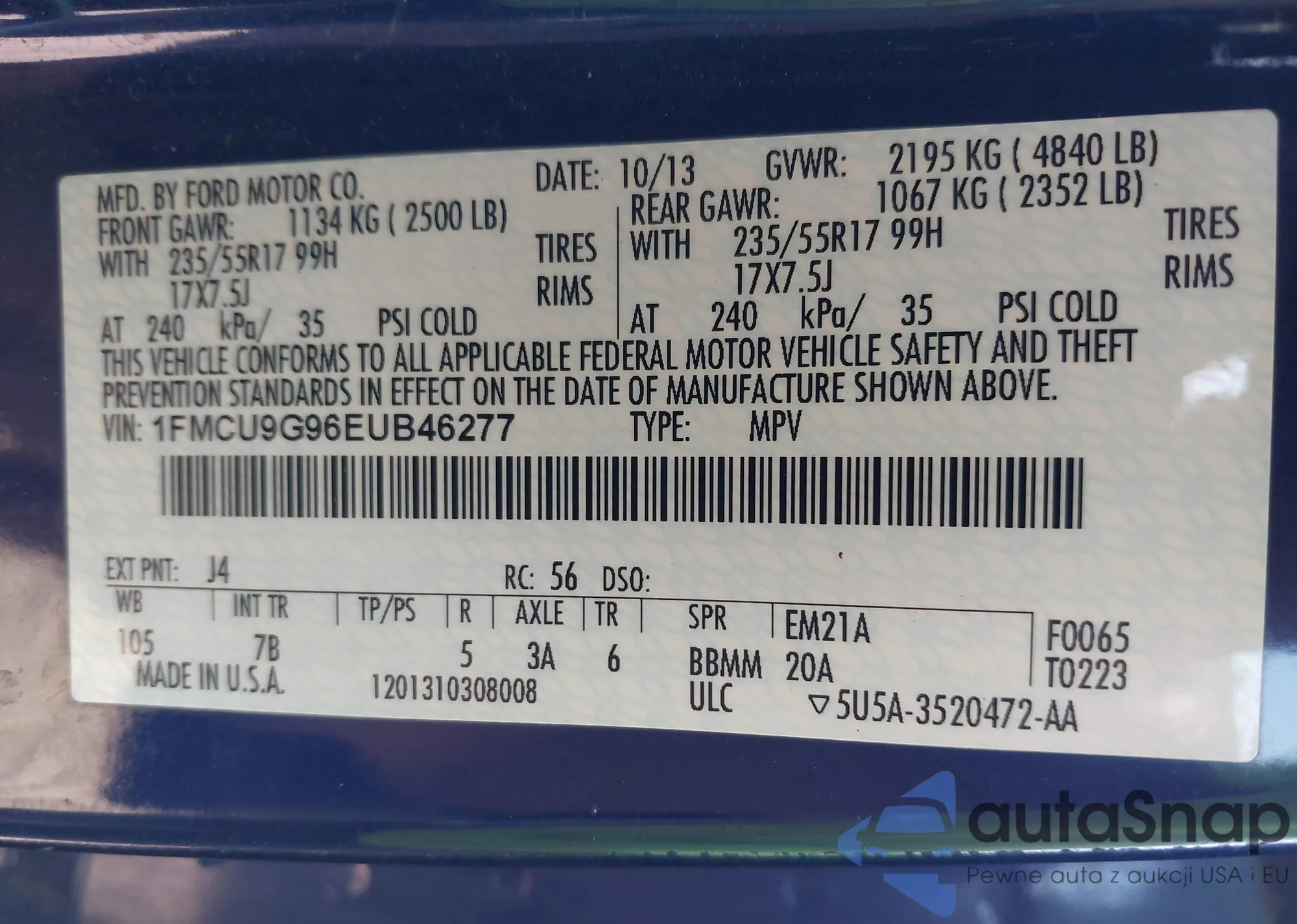 LOT: 43232540 VIN: 1FMCU9G96EUB46277