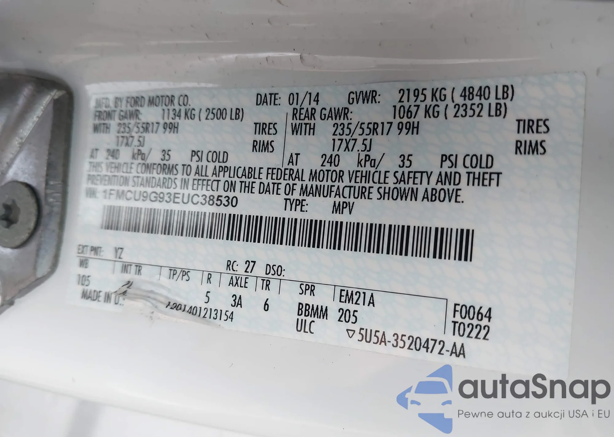 LOT: 44069877 VIN: 1FMCU9G93EUC38530