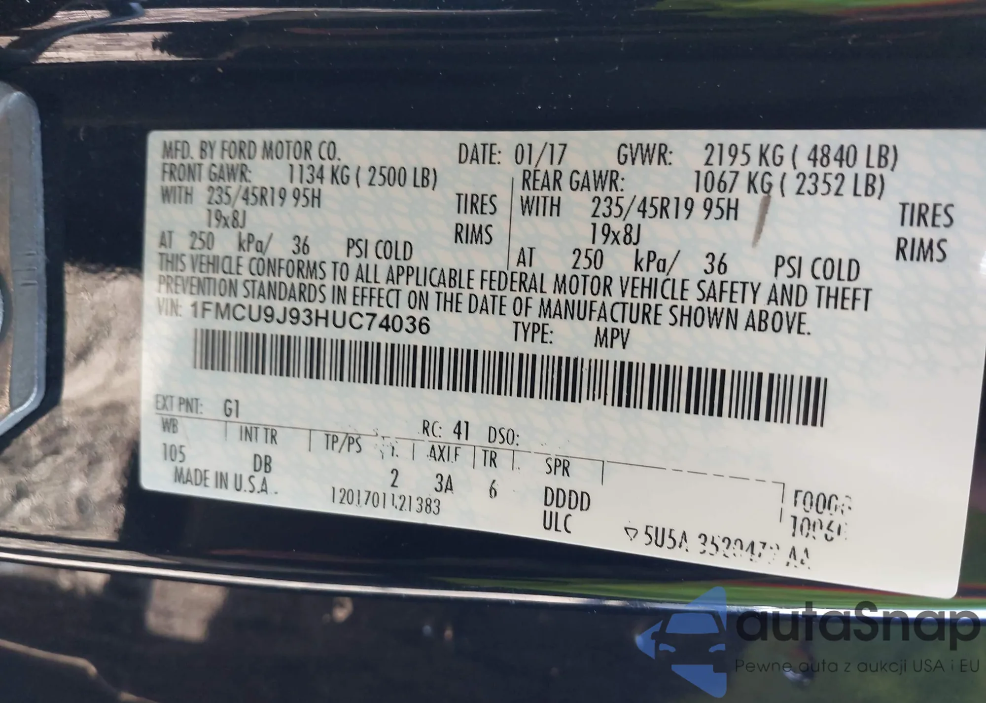 • VIN 1FMCU9J93HUC74036