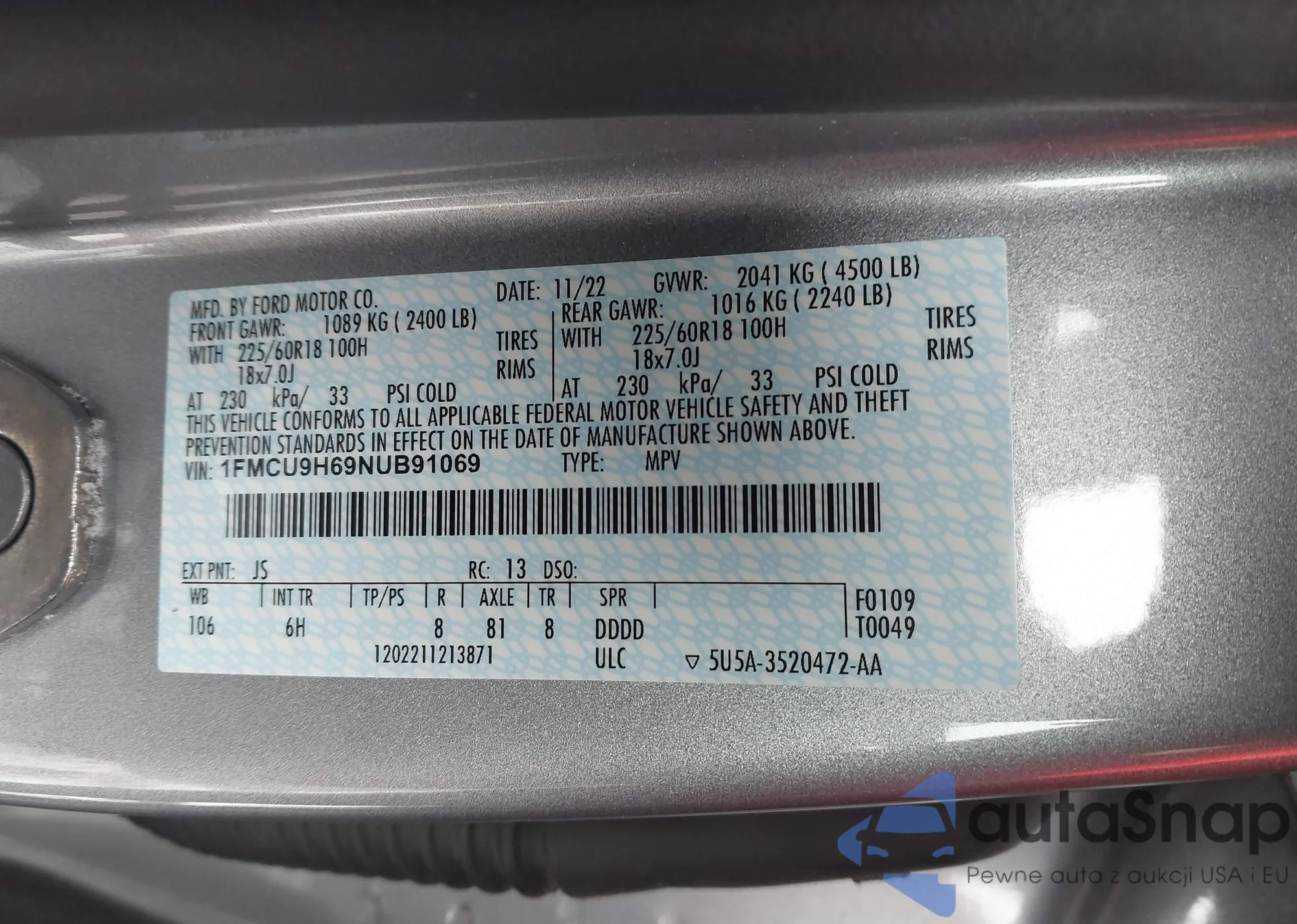 LOT: 44235918 VIN: 1FMCU9H69NUB91069