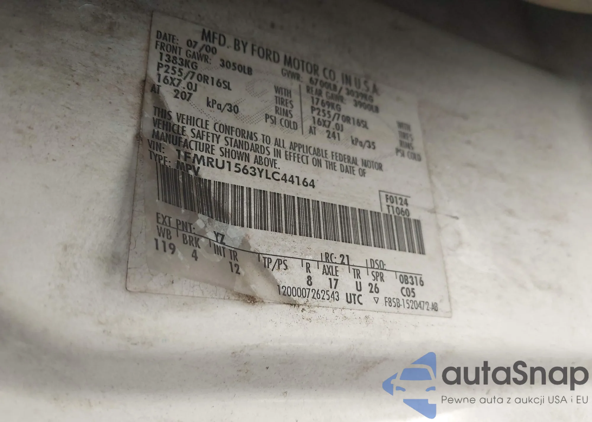 LOT: 43460145 VIN: 1FMRU1563YLC44164