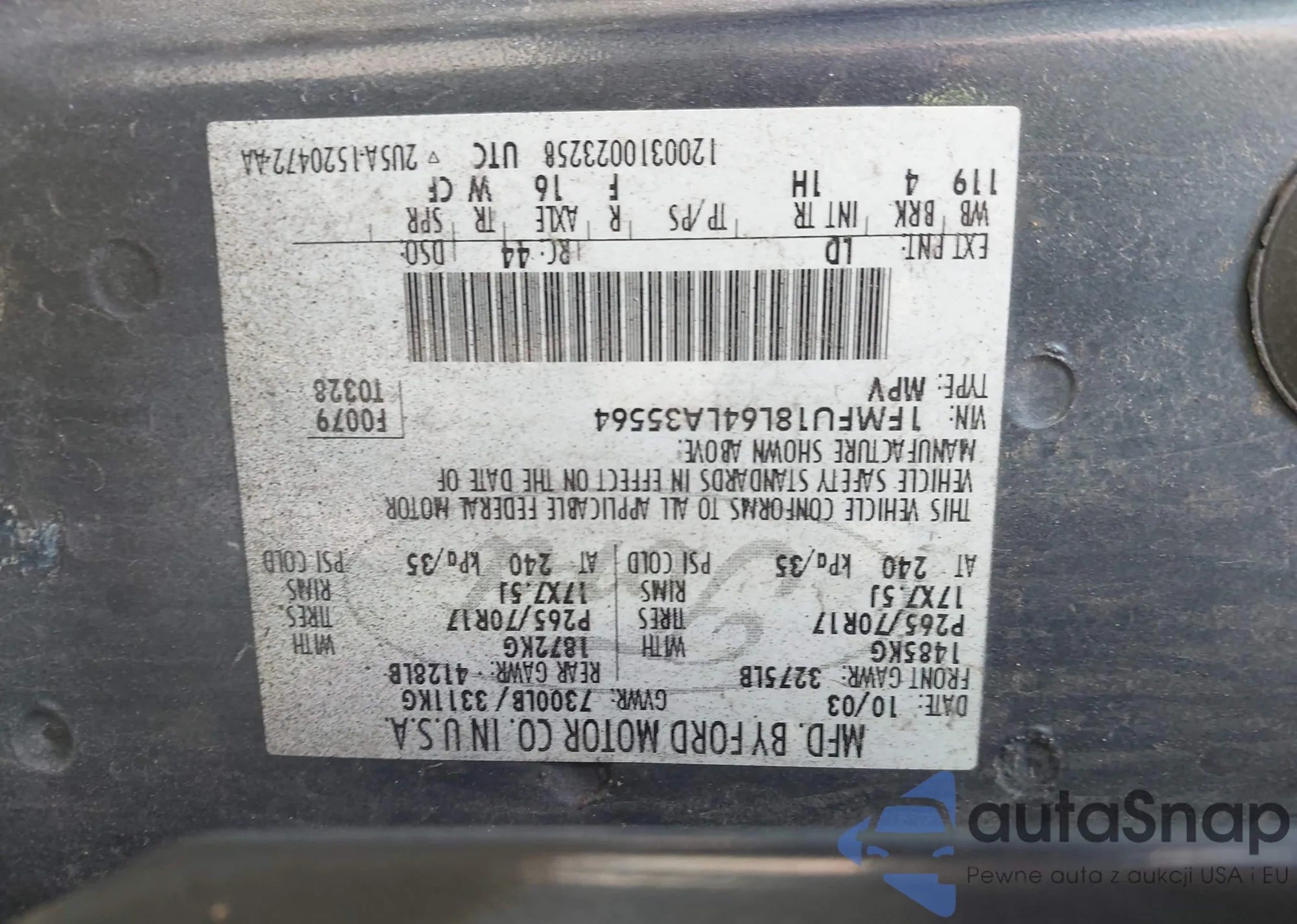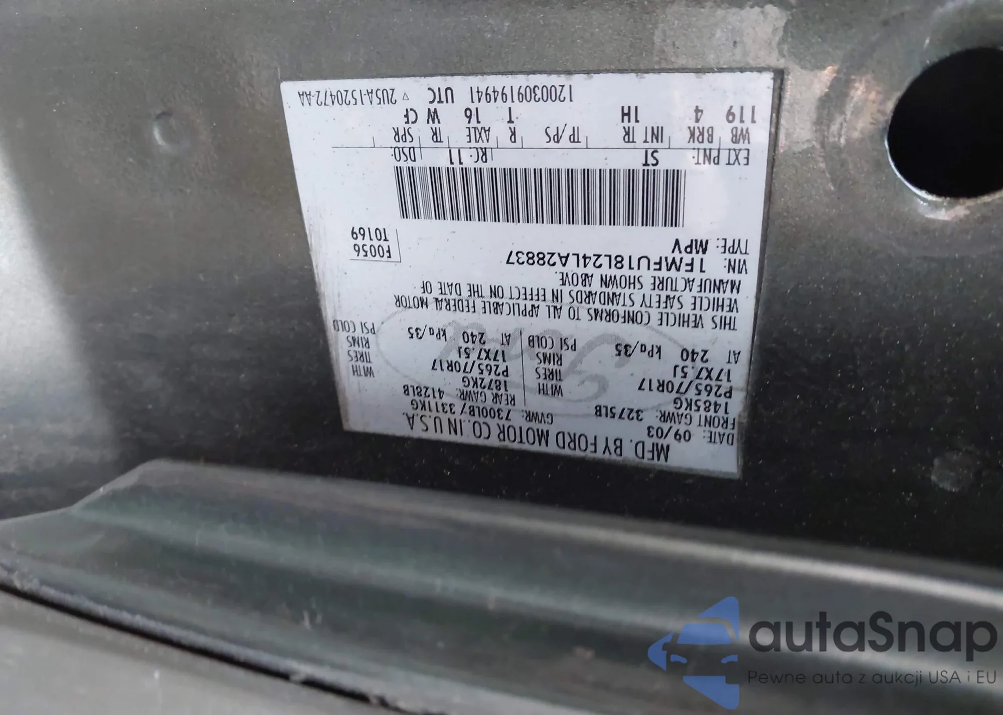• VIN 1FMFU18L24LA28837